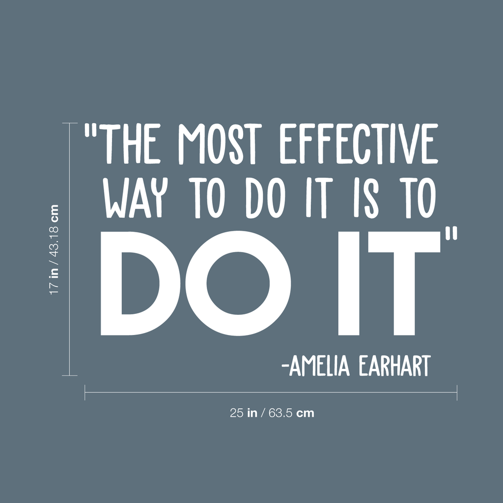 This awesome decal quote "The Most Effective Way To Do It Is To Do It - Amelia Earhart"; is the perfect touch for your home or store. Use it for your storefront; entryway or as a Valentine's gift for someone special. It's a vinyl sticker that is easy to put on any smooth and dry surface. Our modern designs don't just brighten up the room; but brighten up the day. Using top of the line vinyl across all of our production allows us to be the leaders in quality and design.