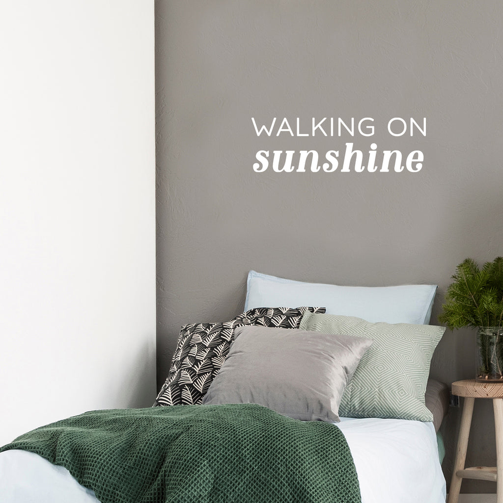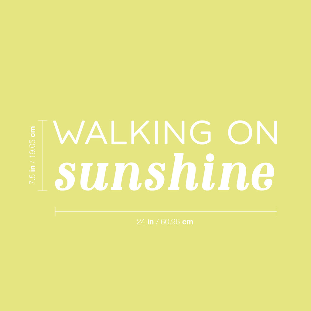 This awesome positive decal quote "Walking On Sunshine"; is the perfect touch for your home or school. Use it for your living room; playroom; kids room or anywhere you want to bring some extra cute decoration. It's a vinyl sticker that is easy to put on any smooth and dry surface. Our modern designs don't just brighten up the room; but brighten up the day. Using top of the line vinyl across all of our production allows us to be the leaders in quality and design.