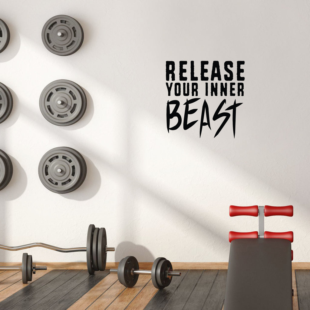 Release Your Inner Beast - Inspirational Gym Quotes Wall Art Vinyl Decal - Workout Wall Decals - Gym Wall Decal Stickers - Fitness Vinyl Sticker - Motivational Gym Vinyl Decals