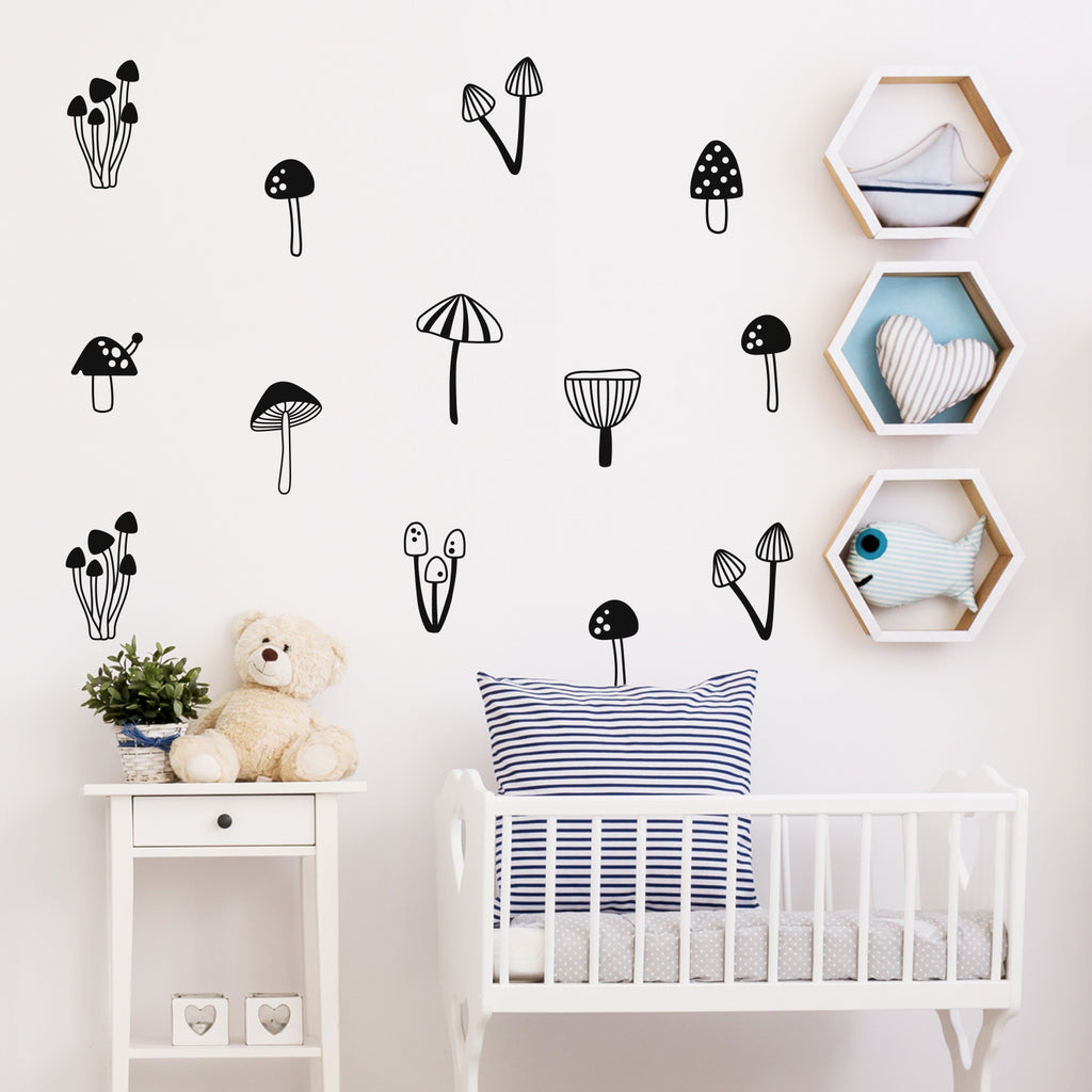 Set Of 20 Vinyl Wall Art Decal - Mushroom Pattern - From Each - Cool Adhesive Sticker Cute Design For Baby Kids Room Bedroom Playroom Home School Classroom Nursery Decor