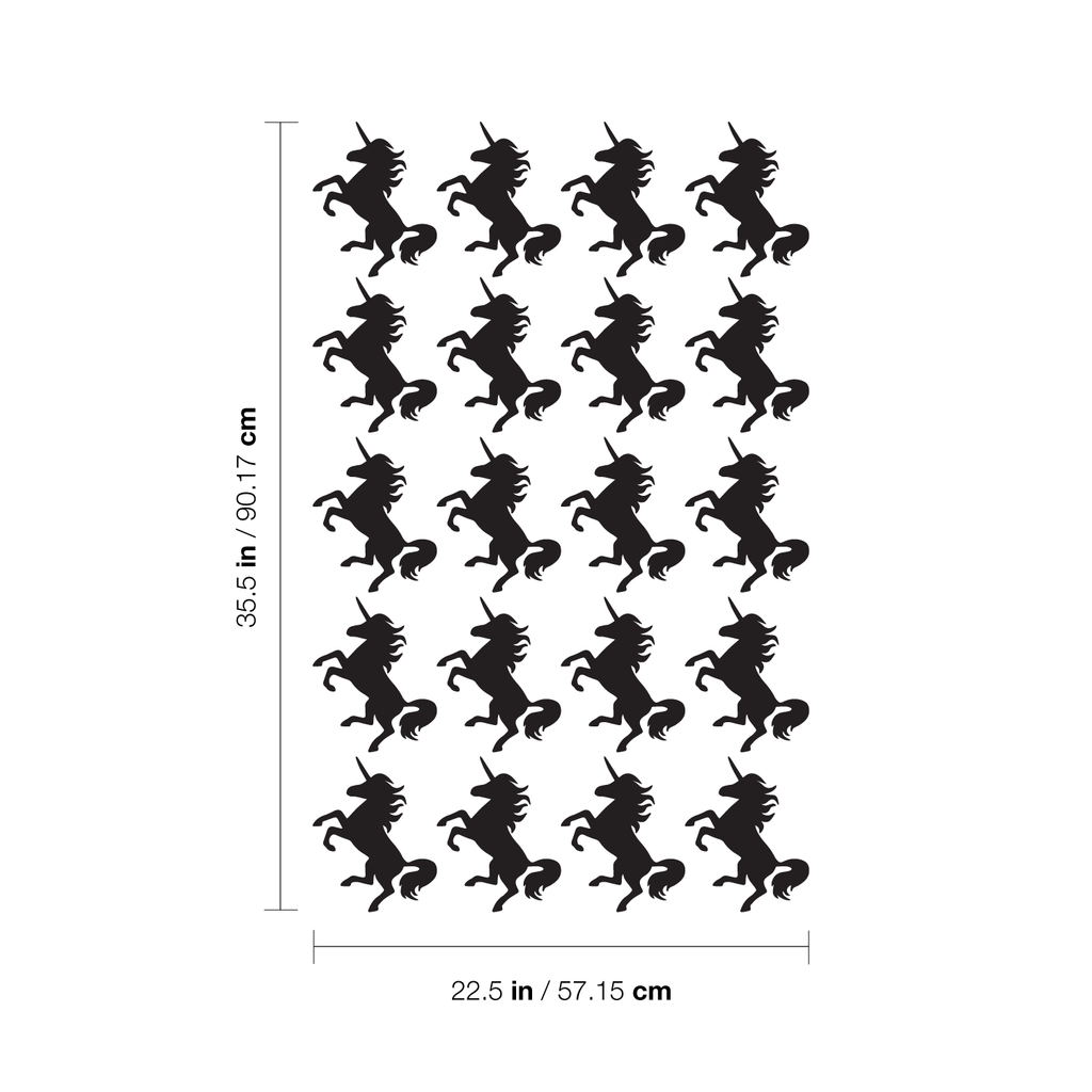 Set Of 20 Vinyl Wall Art Decals - Unicorns Pattern - Each - Beautiful Girly Stencil Adhesives - Removable Unicorn Sticker Decal For Girls Teens Nursery Bedroom Dorm Room Home Decor