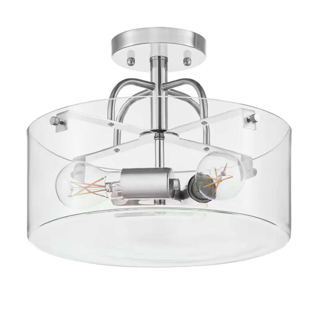 Shirwell 13.5 in. 3-Light Chrome Round Semi-Flush Mount, Modern Ceiling Light with Clear Glass Drum Shade - 1006323928