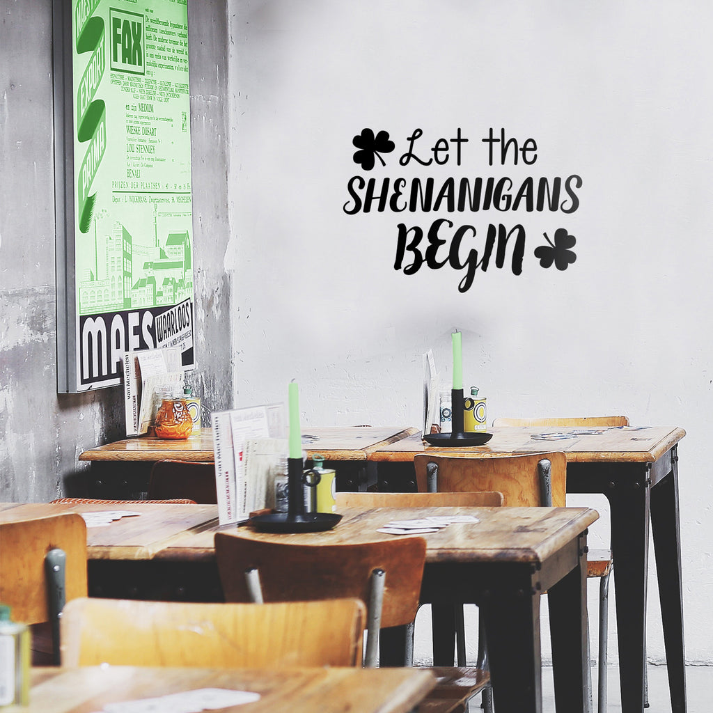 St Patrick’s Day Vinyl Wall Art Decal - Let The Shenanigans Begin - - St Patty’s Holiday Modern Coffee Shop Home Living Room Bedroom Apartment Office Work Decor (; Black)