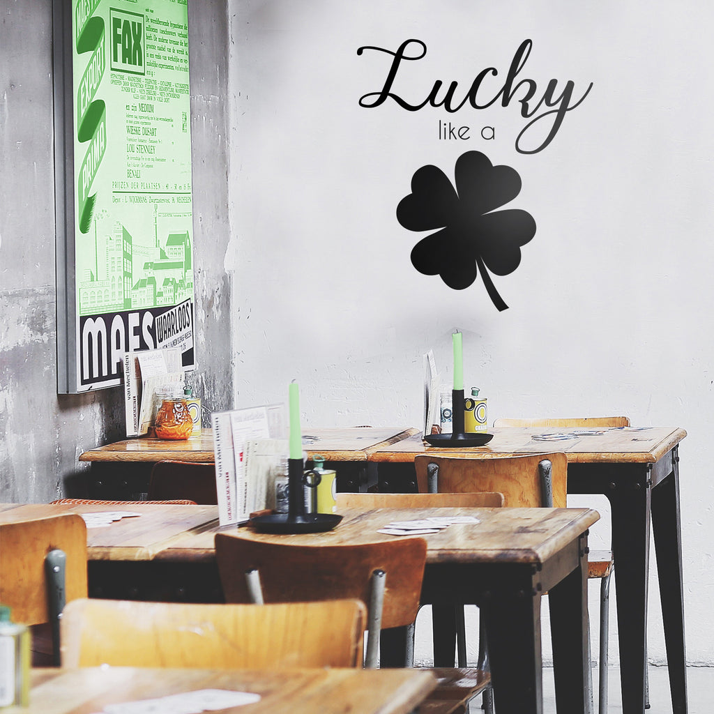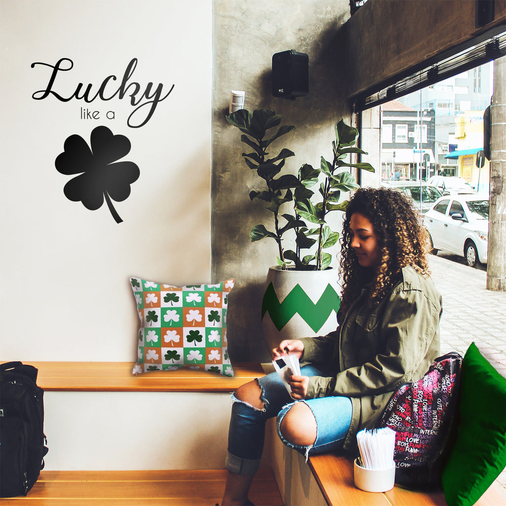 St Patrick’s Day Vinyl Wall Art Decal - Lucky Like A Four Leaf Clover - St Patty’s Holiday Coffee Shop Home Living Room Bedroom Office Work Apartment Decor Sticker (23" x 20"; Black)