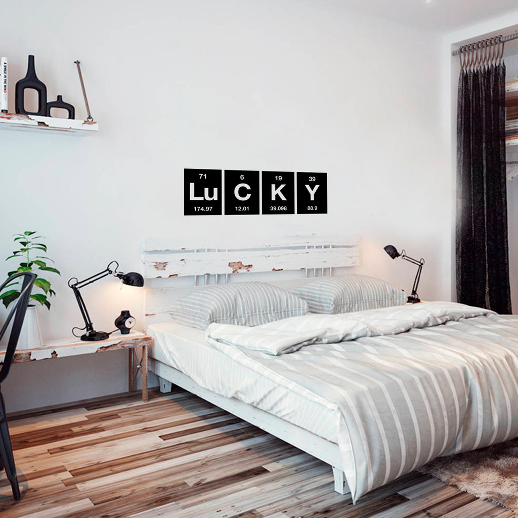 This modern "Lu C K Y" table of elements wall art decal is modern and the perfect touch for both indoor and outdoor decoration. It’s a vinyl sticker that is easy to put on almost any smooth surface and really brings a room together adding the perfect touch of decoration. This vinyl decal quote is perfect for St. Patrick’s day holiday season and festivities. Our modern quotes don’t just brighten up the room; but brighten up the day. Using top of the line vinyl across all of our production allows us to be the leaders in quality and design.The easiest surfaces for Vinyl to stick on is Windows Walls Mirrors Dorm Rooms Cars Lockers Flat and Smooth Surfaces Tables and Glass CabinetsAll vinyl packages come with easy to follow instructions further explaining just how simple it is to apply vinyl on and off your surface of choice. Prior to applying the vinyl; be sure the surface is clean and oil free for best results. This vinyl is waterproof and is not permanent so it’s not only easy to use but easy to remove as well. In general; vinyl lettering is one of the latest and greatest trends in home decoration. Because our products are high quality; they give the illusion of painted wall art without the mess; cost; or time. What are you waiting for? Let’s get crafty!