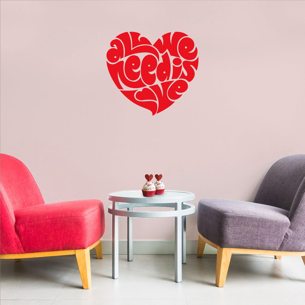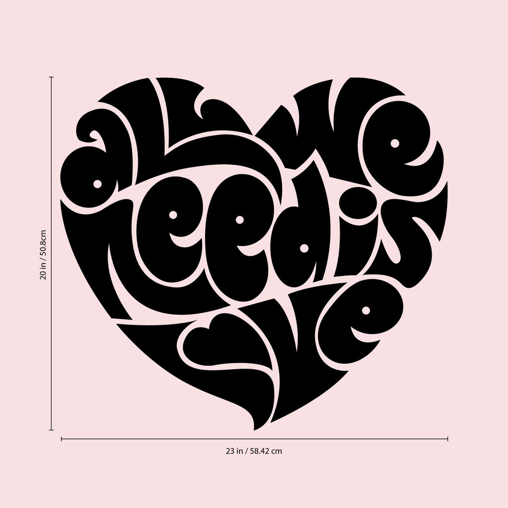 Valentines Day Vinyl Wall Art Decal - All You Need is Love Heart Shape - Valentine’s Home Living Room Bedroom Sticker - Indoor Outdoor Positive Office Apartment Decor (20" x 23"; Black)