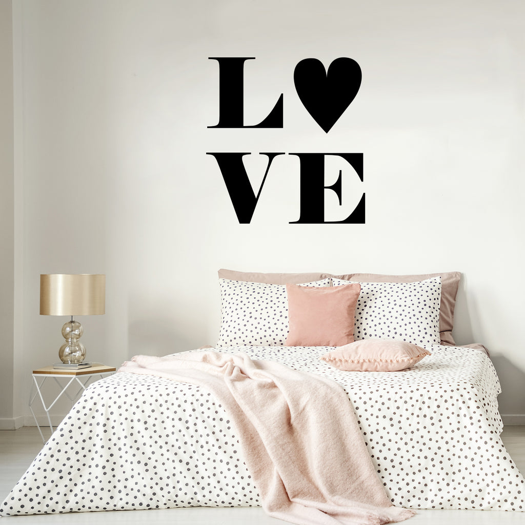 This modern "LOVE" wall art decal is modern and the perfect touch for both indoor and outdoor decoration. It’s a vinyl sticker that is easy to put on almost any smooth surface and really brings a room together adding the perfect touch of decoration. This vinyl decal quote is perfect for Valentine’s day or any time of year to bring charm wherever you decide to put it. Our modern quotes don’t just brighten up the room; but brighten up the day. Using top of the line vinyl across all of our production allows us to be the leaders in quality and design.The easiest surfaces for Vinyl to stick on is Windows Walls Mirrors Dorm Rooms Cars Lockers Flat and Smooth Surfaces Tables and Glass CabinetsAll vinyl packages come with easy to follow instructions further explaining just how simple it is to apply vinyl on and off your surface of choice. Prior to applying the vinyl; be sure the surface is clean and oil free for best results. This vinyl is waterproof and is not permanent so it’s not only easy to use but easy to remove as well. In general; vinyl lettering is one of the latest and greatest trends in home decoration. Because our products are high quality; they give the illusion of painted wall art without the mess; cost; or time. What are you waiting for? Let’s get crafty!