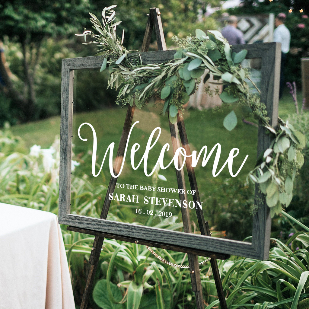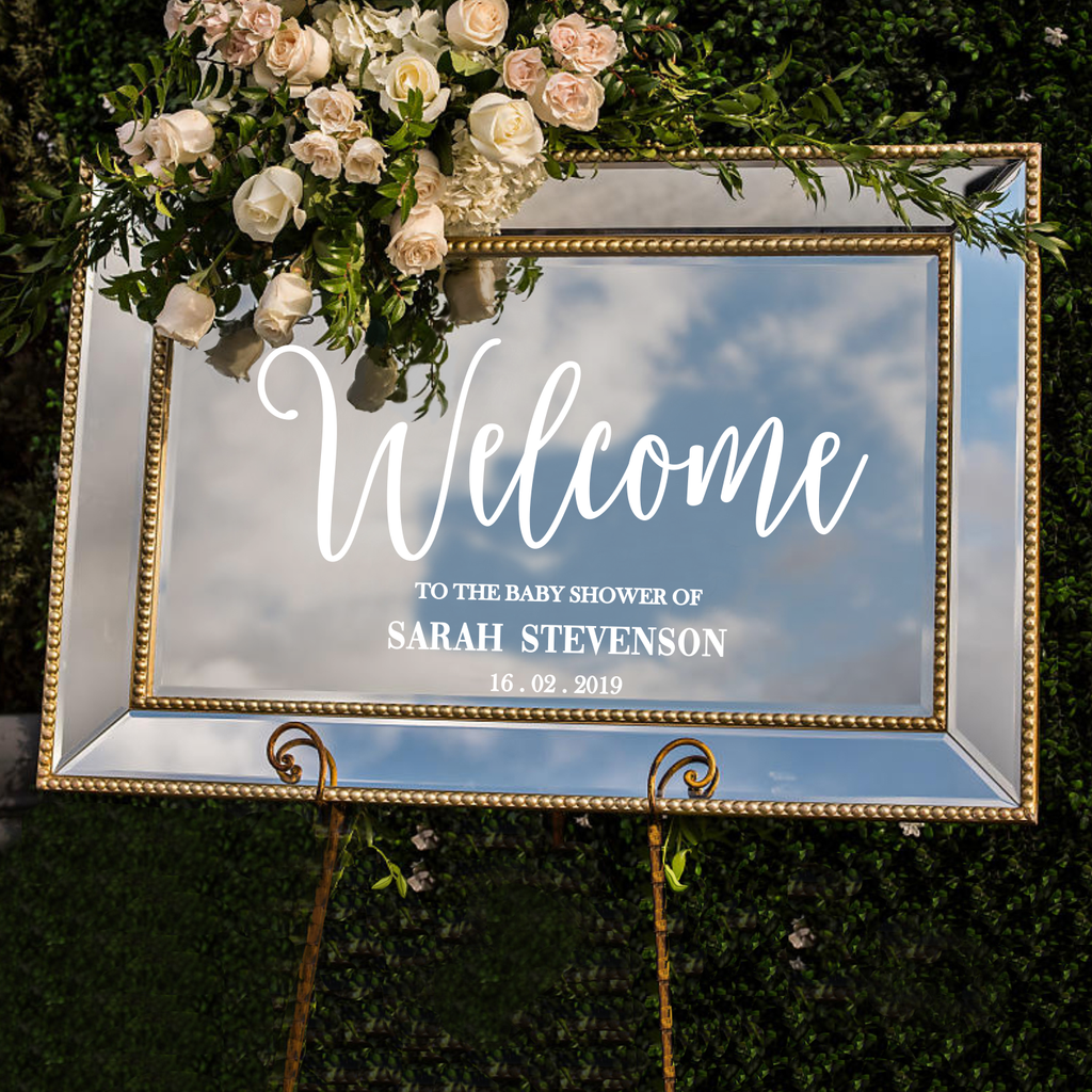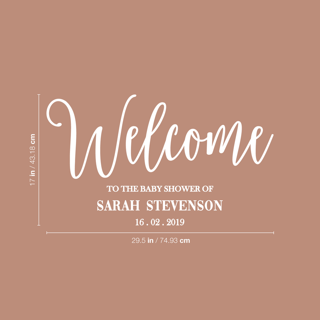 This customizable "Welcome To The Baby Shower Of" Name and Date decal is professional and the perfect touch for indoor and outdoor decoration. It's a vinyl sticker that is easy to put on almost any smooth surface. This vinyl decal quote is great to decorate a wall; frame; or mirror for that special day to remember forever. Using top of the line vinyl across all of our production allows us to be the leaders in quality and design.