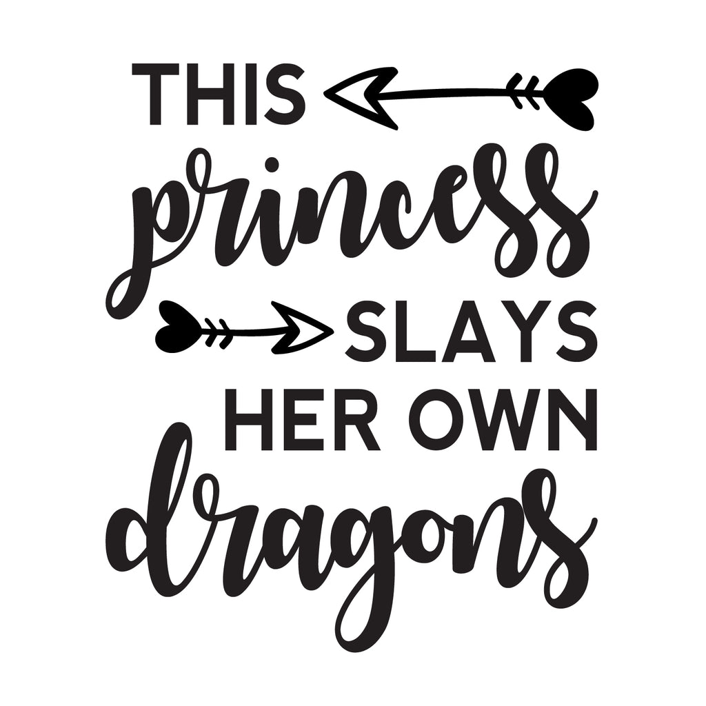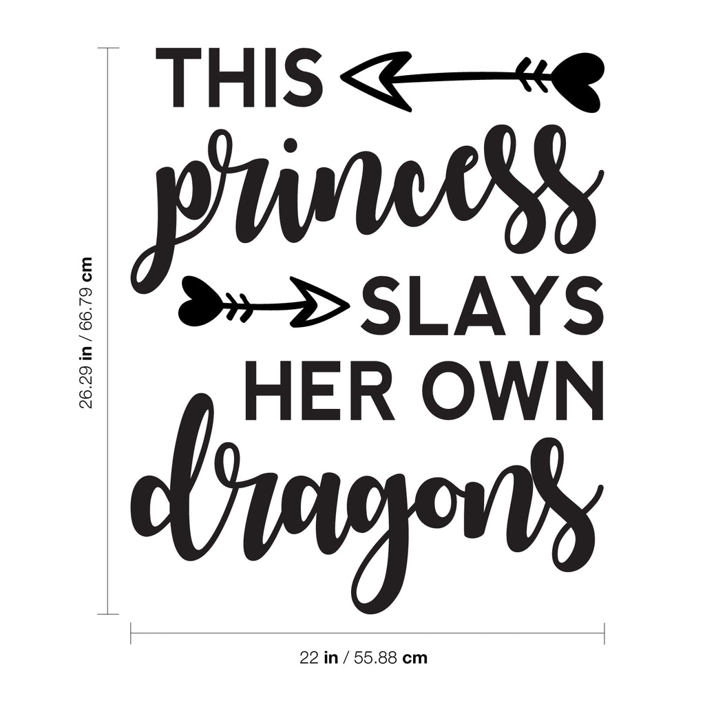 Vinyl Art Wall Decal - This Princess Slays Her Own Dragons - 26.- Little Girls Toddler Quotes Preschool Nursery Home Bedroom Playroom Apartment Indoor Outdoor Decor (26.29" x 22"; Black)