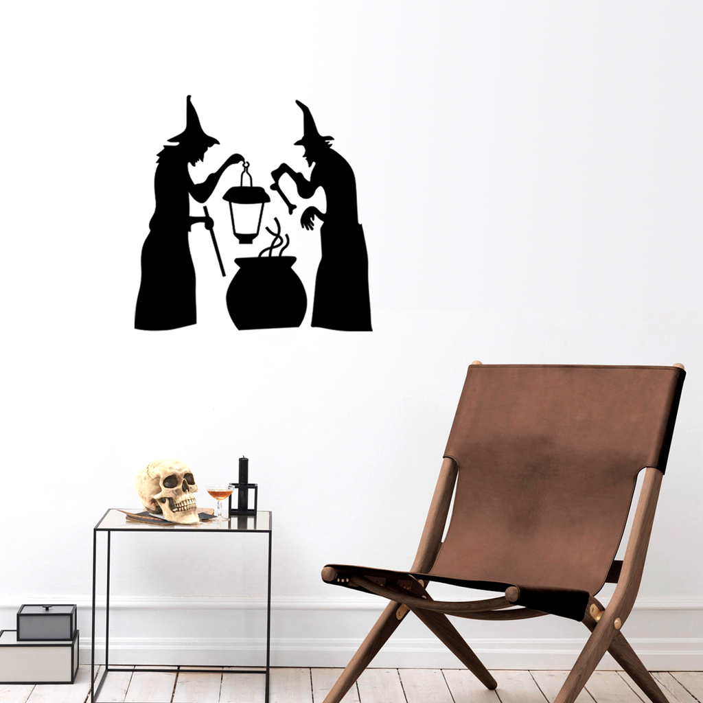 This Halloween inspired 2 Witches And Cauldron wall art decal is the perfect touch for both indoor and outdoor decoration. It's a vinyl sticker that is easy to put on almost any smooth surface and really brings a room together adding the perfect touch of decoration. This vinyl decal is perfect for Halloween season in the October month. Our modern decals don't just brighten up the room; but brighten up the day. Using top of the line vinyl across all of our production allows us to be the leaders in quality and design.
