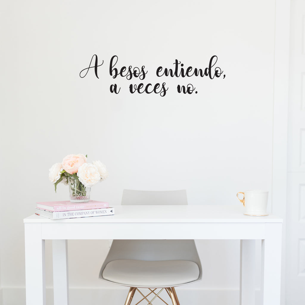This great decal quote "A Besos Entiendo A Veces No"; is the perfect touch for your home. Use it for your makeup area; dorm room or anywhere you want to bring some extra decoration. It's a vinyl sticker that is easy to put on any smooth and dry surface. Our modern designs don't just brighten up the room; but brighten up the day. Using top of the line vinyl across all of our production allows us to be the leaders in quality and design.