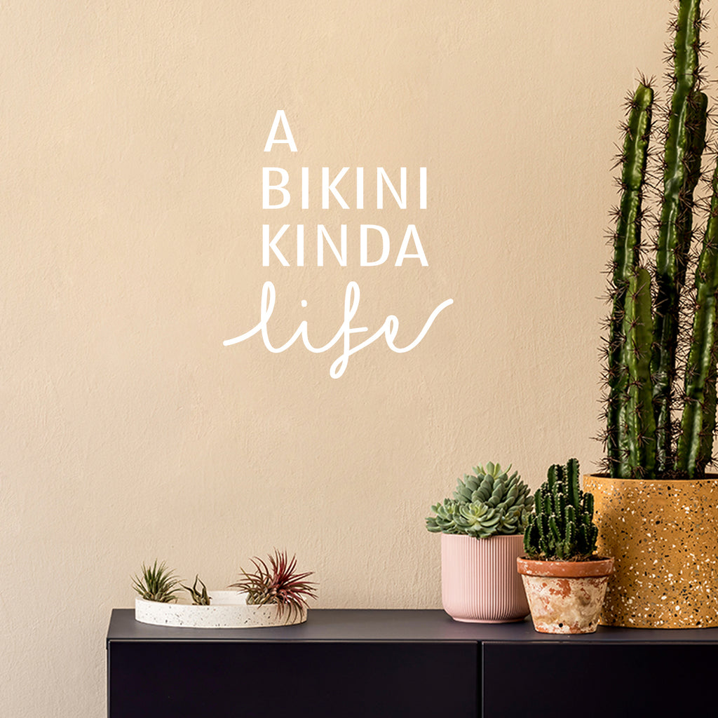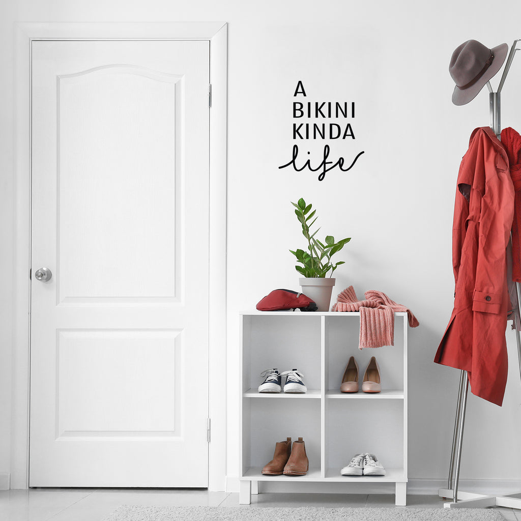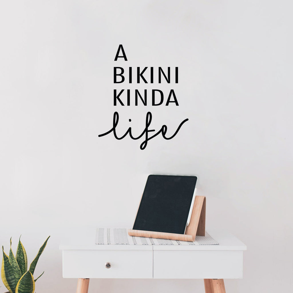 This awesome motivational & positive decal quote "A Bikini Kinda Life"; is the perfect touch for your home or store. Use it for your living room; office; coffee shop or anywhere you want to bring some extra cute decoration. It's a vinyl sticker that is easy to put on any smooth and dry surface. Our modern designs don't just brighten up the room; but brighten up the day. Using top of the line vinyl across all of our production allows us to be the leaders in quality and design.