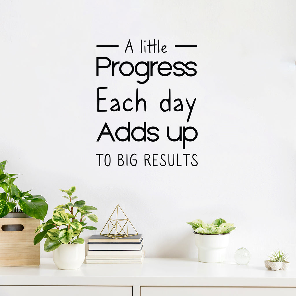 Vinyl Wall Art Decal - A Little Progress Each Day - Inspirational Positive Proactive Vibes Quote Sticker For Office Business Coffee Shop School Classroom Playroom Decor
