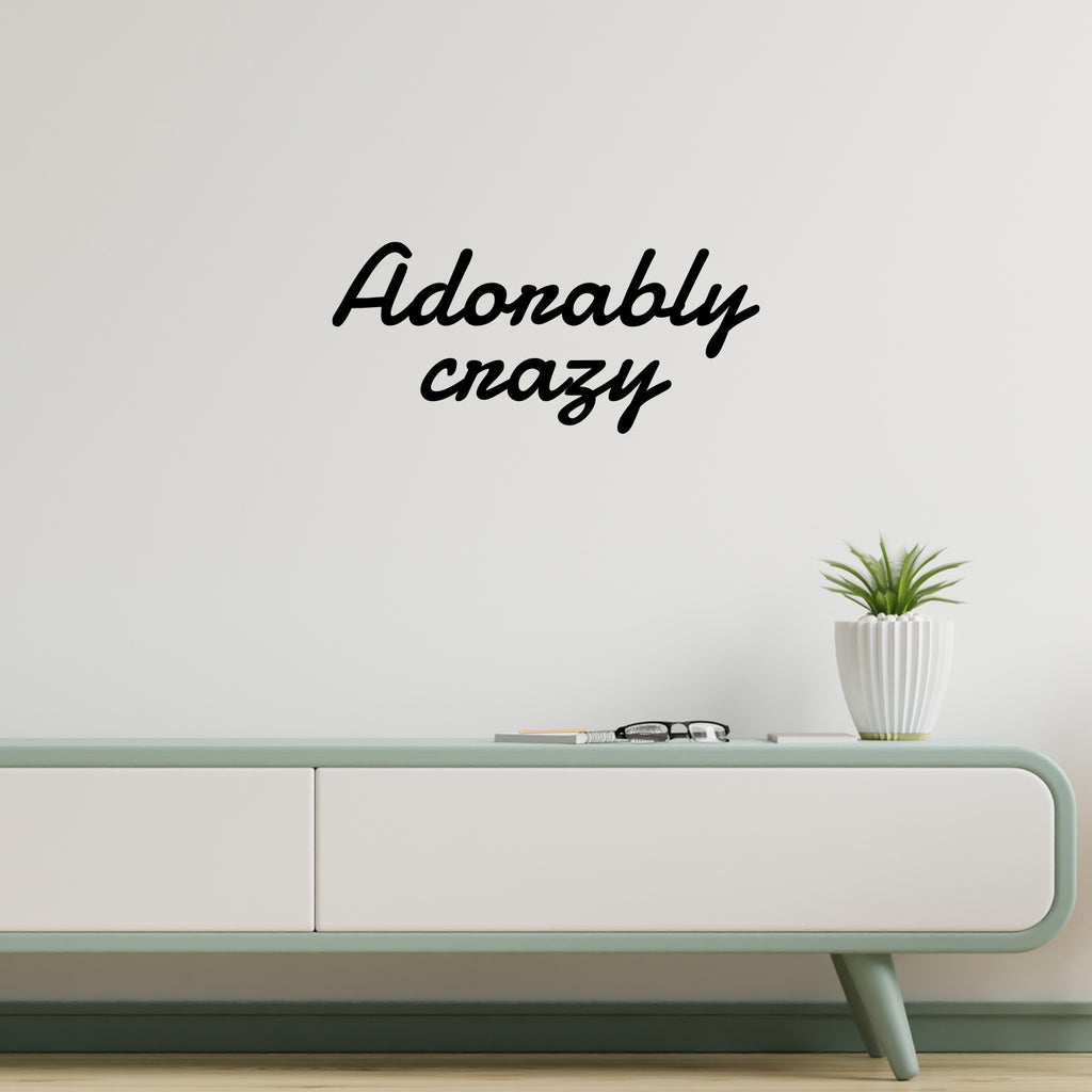 This great fun inspirational lovely decal quote "Adorably Crazy" is the perfect touch for your home. Use it for your nursery; playroom; kids room or anywhere you want to bring some extra cute decoration. It's a vinyl sticker that is easy to put on any smooth and dry surface. Our modern designs don't just brighten up the room; but brighten up the day. Using top of the line vinyl across all of our production allows us to be the leaders in quality and design.