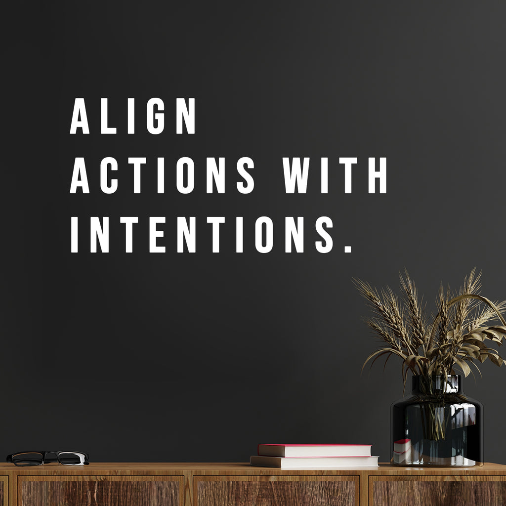 This awesome inspirational decal quote "Align Actions With Intentions" is the perfect touch for your home or school. Use it for your closet; living room; coffee shop or anywhere you want to bring some extra cute decoration. It's a vinyl sticker that is easy to put on any smooth and dry surface. Our modern designs don't just brighten up the room; but brighten up the day. Using top of the line vinyl across all of our production allows us to be the leaders in quality and design.