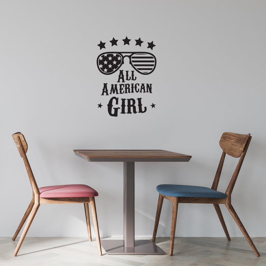 This patriotism decal quote "All American Girl"; is the perfect touch for your home. Use it for your bedroom; living room or anywhere you want to bring some extra positive decoration. It's a vinyl sticker that is easy to put on any smooth and dry surface. Our modern designs don't just brighten up the room; but brighten up the day. Using top of the line vinyl across all of our production allows us to be the leaders in quality and design.