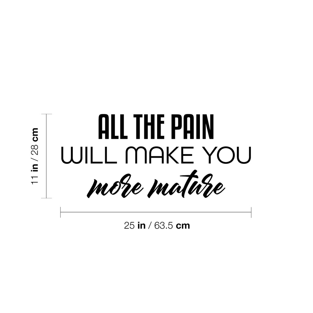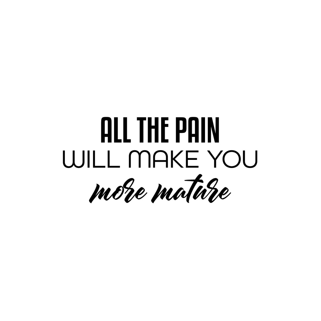 This positive decal quote "All The Pain Will Make You More Mature"; is the perfect touch for your home or office. Use it for your bedroom; closet; living room or anywhere you want to bring some extra positive decoration. It's a vinyl sticker that is easy to put on any smooth and dry surface. Our modern designs don't just brighten up the room; but brighten up the day. Using top of the line vinyl across all of our production allows us to be the leaders in quality and design.