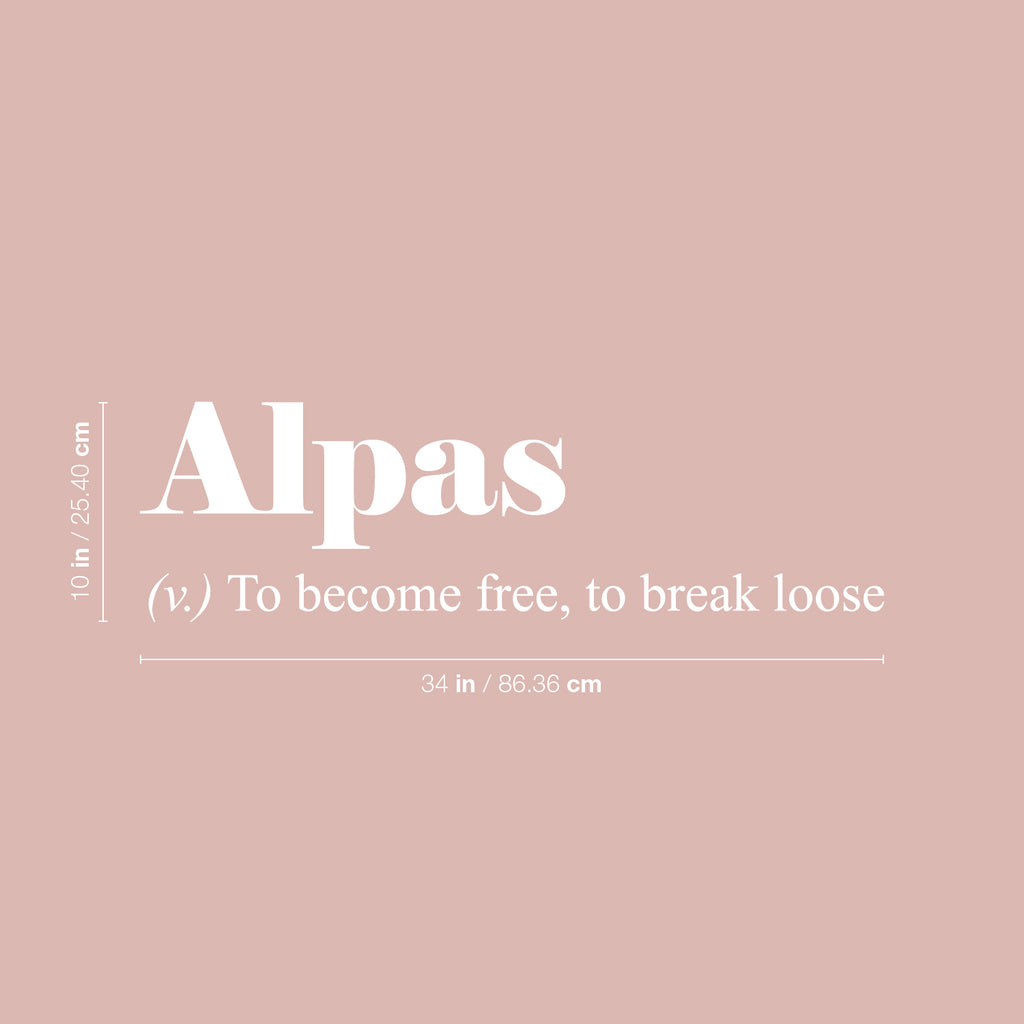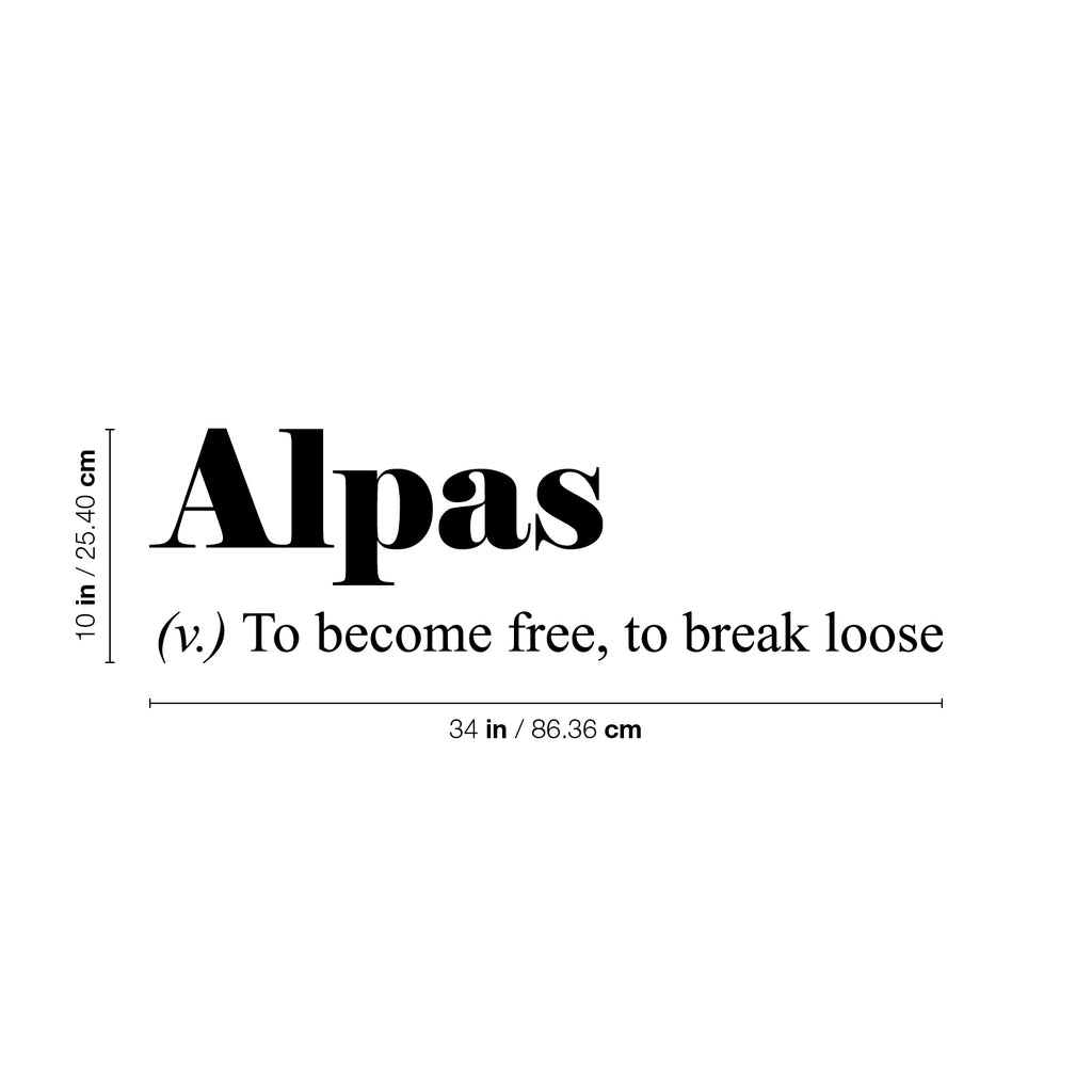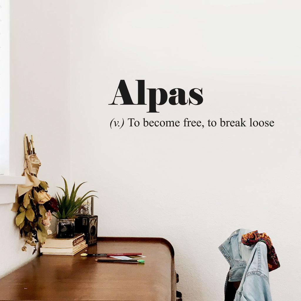This motivational & modern decal quote "Alpas. To Become Free; To Break Loose" is the perfect touch for your home or office . Use it for your living room; closet or anywhere you want to bring some extra cute decoration. It's a vinyl sticker that is easy to put on any smooth and dry surface. Our modern designs don't just brighten up the room; but brighten up the day. Using top of the line vinyl across all of our production allows us to be the leaders in quality and design.