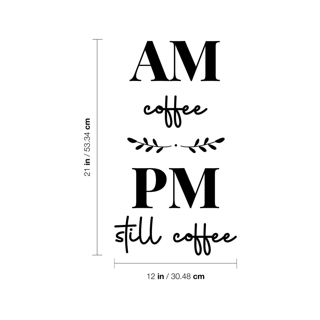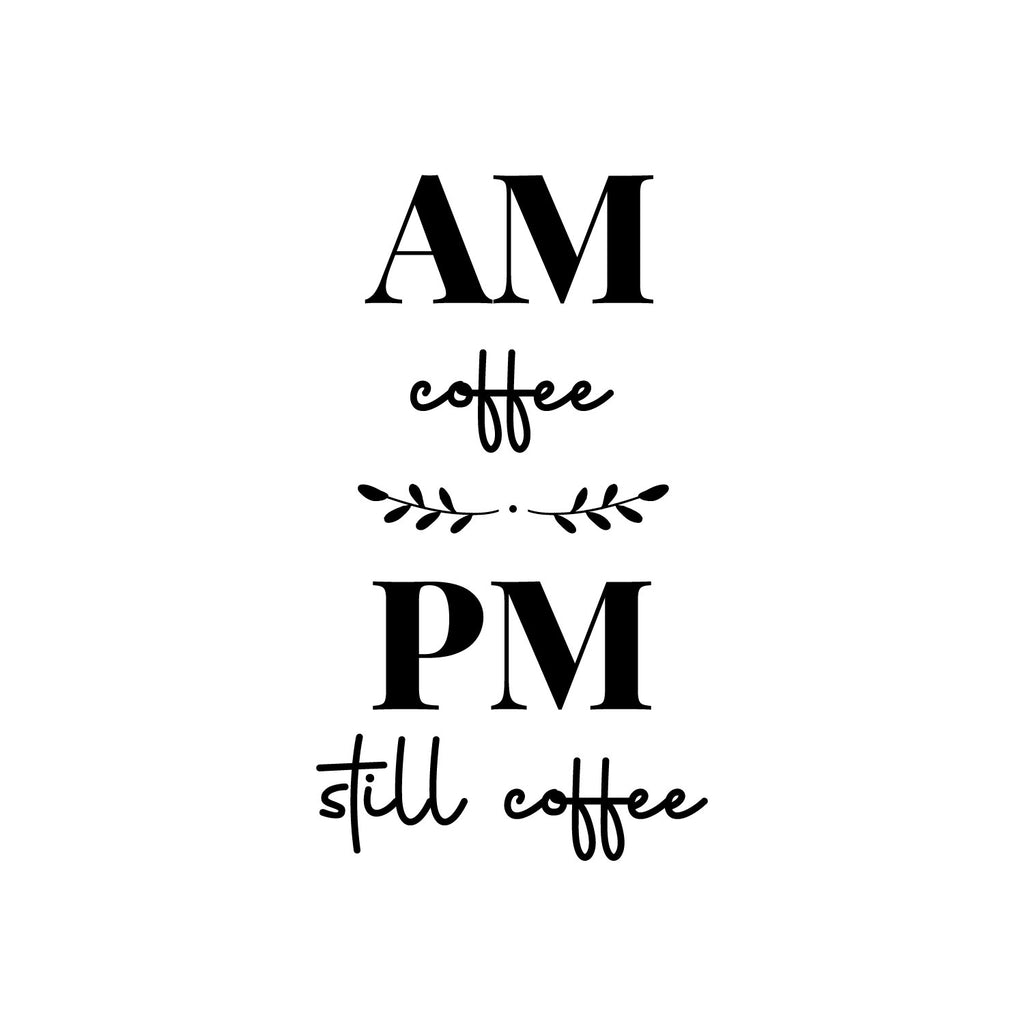This awesome inspirational decal quote "AM Coffee PM Coffee"; is the perfect touch for your office or coffee shop. Use it for your dining room; restaurant; kitchen or anywhere you want to bring some extra fun decoration. It's a vinyl sticker that is easy to put on any smooth and dry surface. Our modern designs don't just brighten up the room; but brighten up the day. Using top of the line vinyl across all of our production allows us to be the leaders in quality and design.