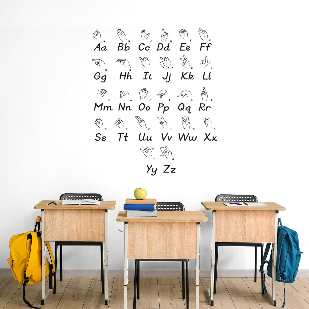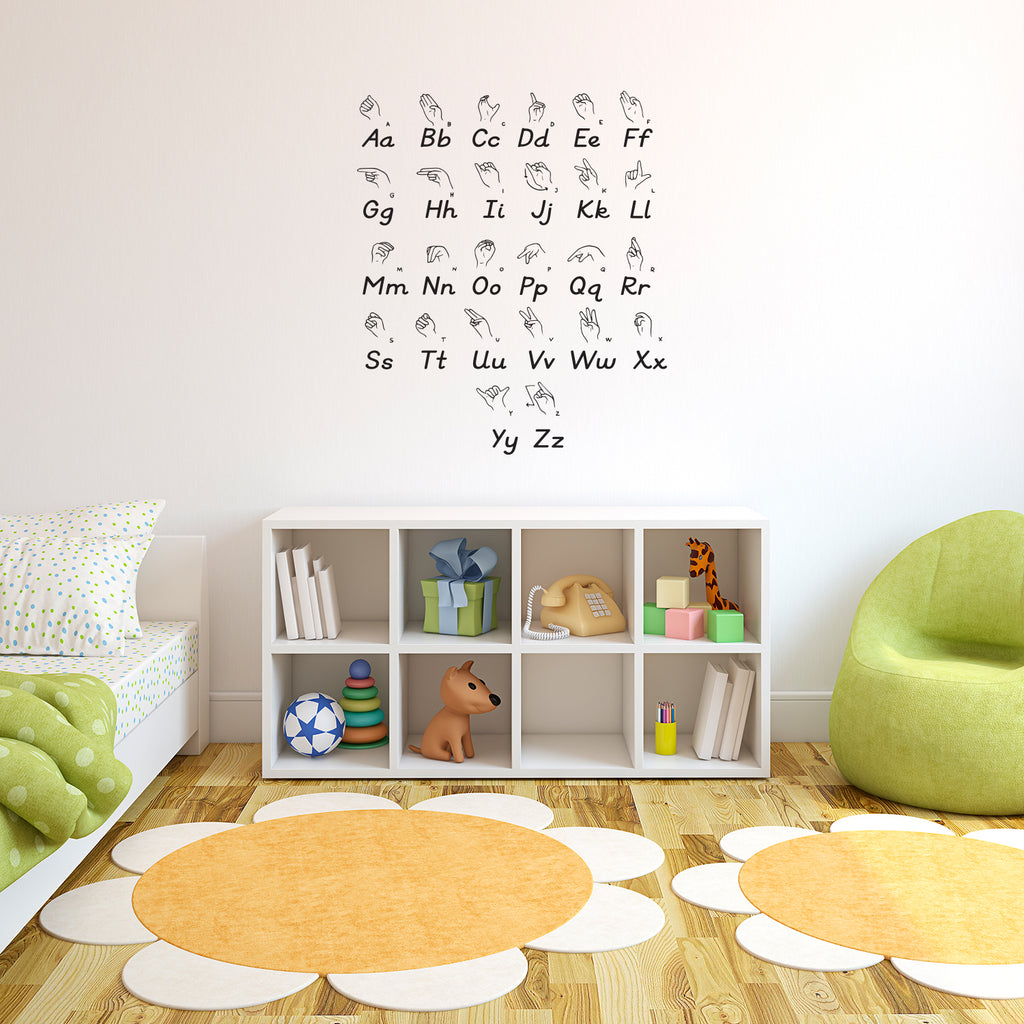 This visual learning decal "American Sign Language"; is the perfect touch for your home or school. Use it for your living room; playroom; kids room or anywhere you want to bring some extra funny decoration. It's a vinyl sticker that is easy to put on any smooth and dry surface. Our modern designs don't just brighten up the room; but brighten up the day. Using top of the line vinyl across all of our production allows us to be the leaders in quality and design.