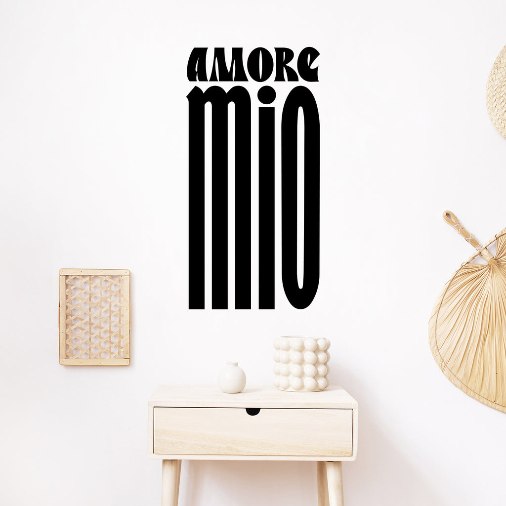This awesome positive decal quote "Amore Mio / My Love"; is the perfect touch for your home or office. Use it for your bedroom; living room; classroom or anywhere you want to bring some extra positive decoration. It's a vinyl sticker that is easy to put on any smooth and dry surface. Our modern designs don't just brighten up the room; but brighten up the day. Using top of the line vinyl across all of our production allows us to be the leaders in quality and design.