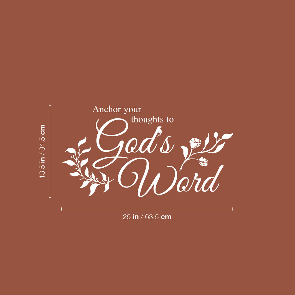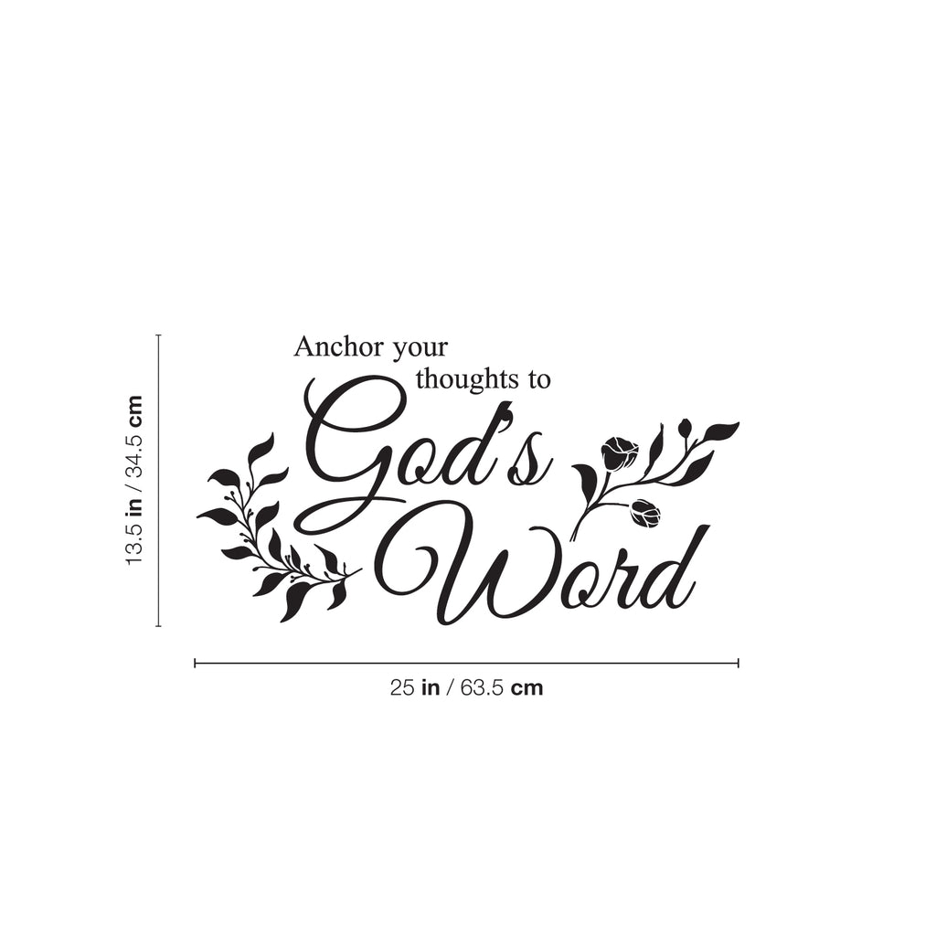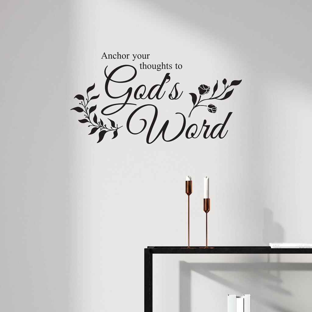 This awesome spiritual & inspiring decal quote "Anchor Your Thoughts To Gods Word"; is the perfect touch for your home. Use it for your bedroom; closet; living room or anywhere you want to bring some extra cute decoration. It's a vinyl sticker that is easy to put on any smooth and dry surface. Our modern designs don't just brighten up the room; but brighten up the day. Using top of the line vinyl across all of our production allows us to be the leaders in quality and design.