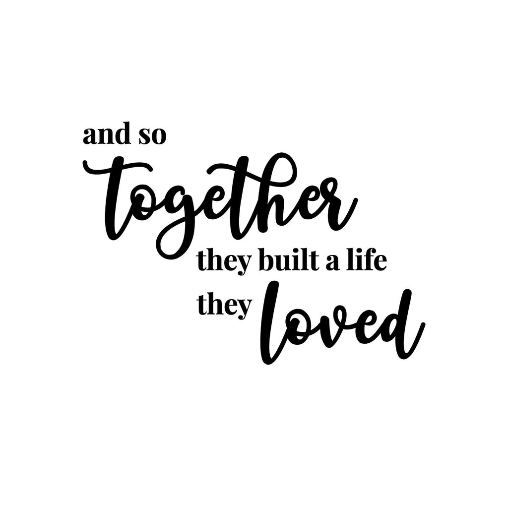 This cute & inspirational decal quote "And So Together They Built A Life They Loved"; is the perfect touch for your home. Use it for your living room; dorm room or anywhere you want to bring some extra cute decoration. It's a vinyl sticker that is easy to put on any smooth and dry surface. Our modern designs don't just brighten up the room; but brighten up the day. Using top of the line vinyl across all of our production allows us to be the leaders in quality and design.