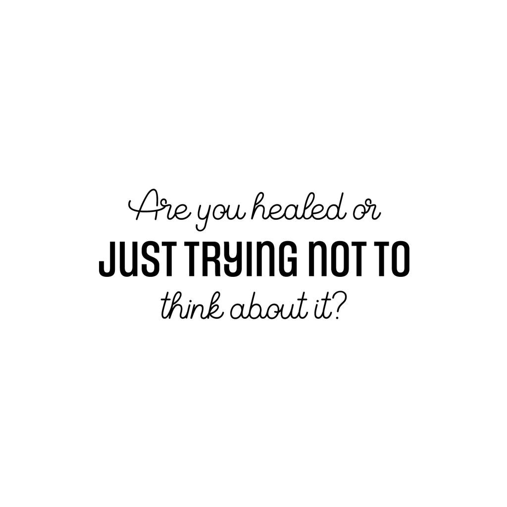 This awesome inspirational decal quote "Are You Healed Or Just Trying Not To Think About It?"; is the perfect touch for your home or office. Use it for your living room or bedroom or anywhere you want to bring some extra positive decoration. It's a vinyl sticker that is easy to put on any smooth and dry surface. Our modern designs don't just brighten up the room; but brighten up the day. Using top of the line vinyl across all of our production allows us to be the leaders in quality and design.