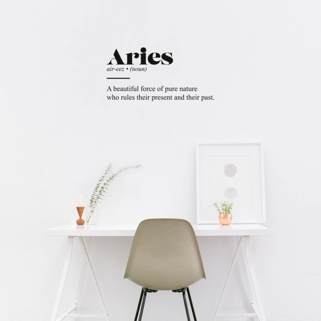 This awesome inspirational decal quote "Aries Zodiac Sign Definition"; is the perfect touch for your home or office. Use it for your bedroom; living room; office or anywhere you want to bring some extra decoration. It's a vinyl sticker that is easy to put on any smooth and dry surface. Our modern designs don't just brighten up the room; but brighten up the day. Using top of the line vinyl across all of our production allows us to be the leaders in quality and design.