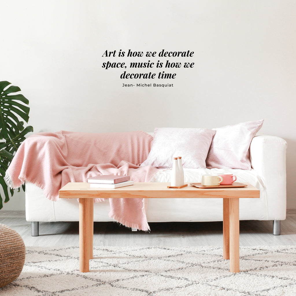 This awesome positive & inspirational decal quote "Art Is How We Decorate Spaces Music Is How We Decorate Time"; is the perfect touch for your home or apartment. Use it for your bedroom; living room; home office or anywhere you want to bring some extra decoration. It's a vinyl sticker that is easy to put on any smooth and dry surface. Our modern designs don't just brighten up the room; but brighten up the day. Using top of the line vinyl across all of our production allows us to be the leaders in quality and design.