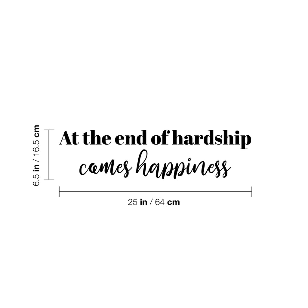 This awesome motivational & positive decal quote "At The End Of Hardship Comes Happiness"; is the perfect touch for your home or office. Use it for your bedroom; closet ; classroom or anywhere you want to bring some extra positive decoration. It's a vinyl sticker that is easy to put on any smooth and dry surface. Our modern designs don't just brighten up the room; but brighten up the day. Using top of the line vinyl across all of our production allows us to be the leaders in quality and design.