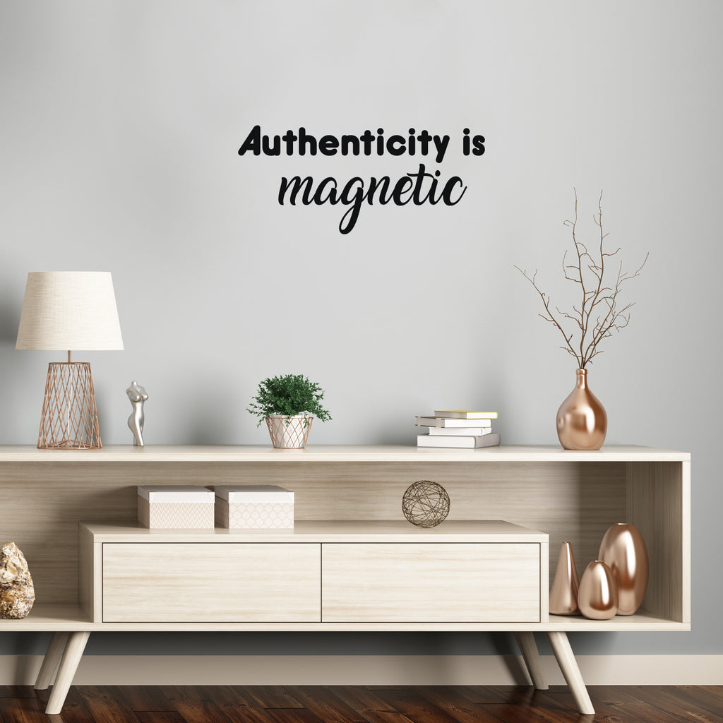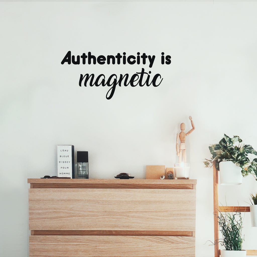 This awesome motivational & optimistic decal quote "Authenticity Is Magnetic"; is the perfect touch for your home or office. Use it for your living room; playroom; kids room or anywhere you want to bring some extra cute decoration. It's a vinyl sticker that is easy to put on any smooth and dry surface. Our modern designs don't just brighten up the room; but brighten up the day. Using top of the line vinyl across all of our production allows us to be the leaders in quality and design.