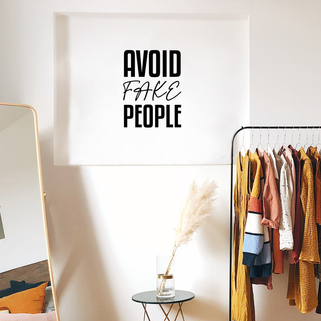 This awesome decal quote "Avoid Fake People"; is the perfect touch for your home or work. Use it for your dorm room; home office or anywhere you want to bring some extra decoration. It's a vinyl sticker that is easy to put on any smooth and dry surface. Our modern designs don't just brighten up the room; but brighten up the day. Using top of the line vinyl across all of our production allows us to be the leaders in quality and design.