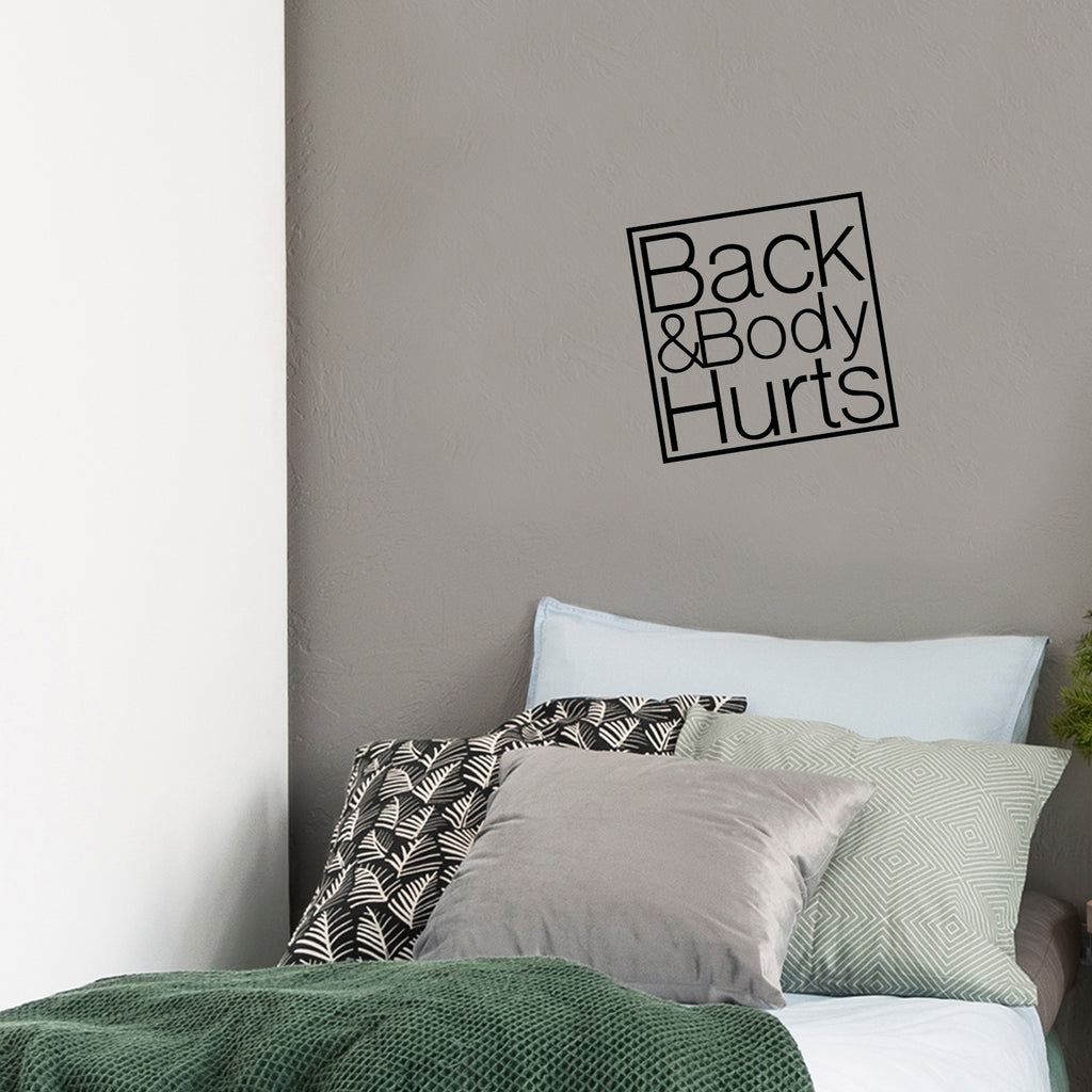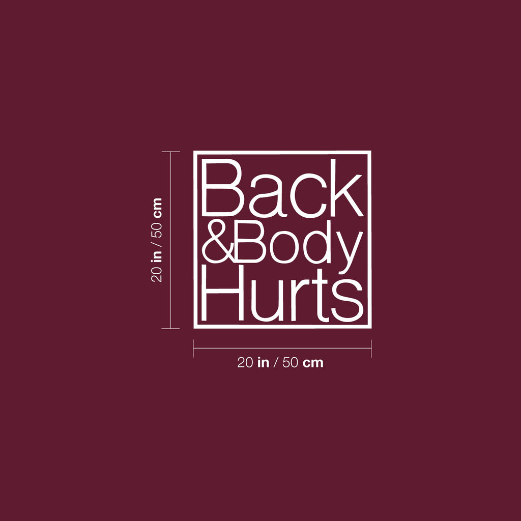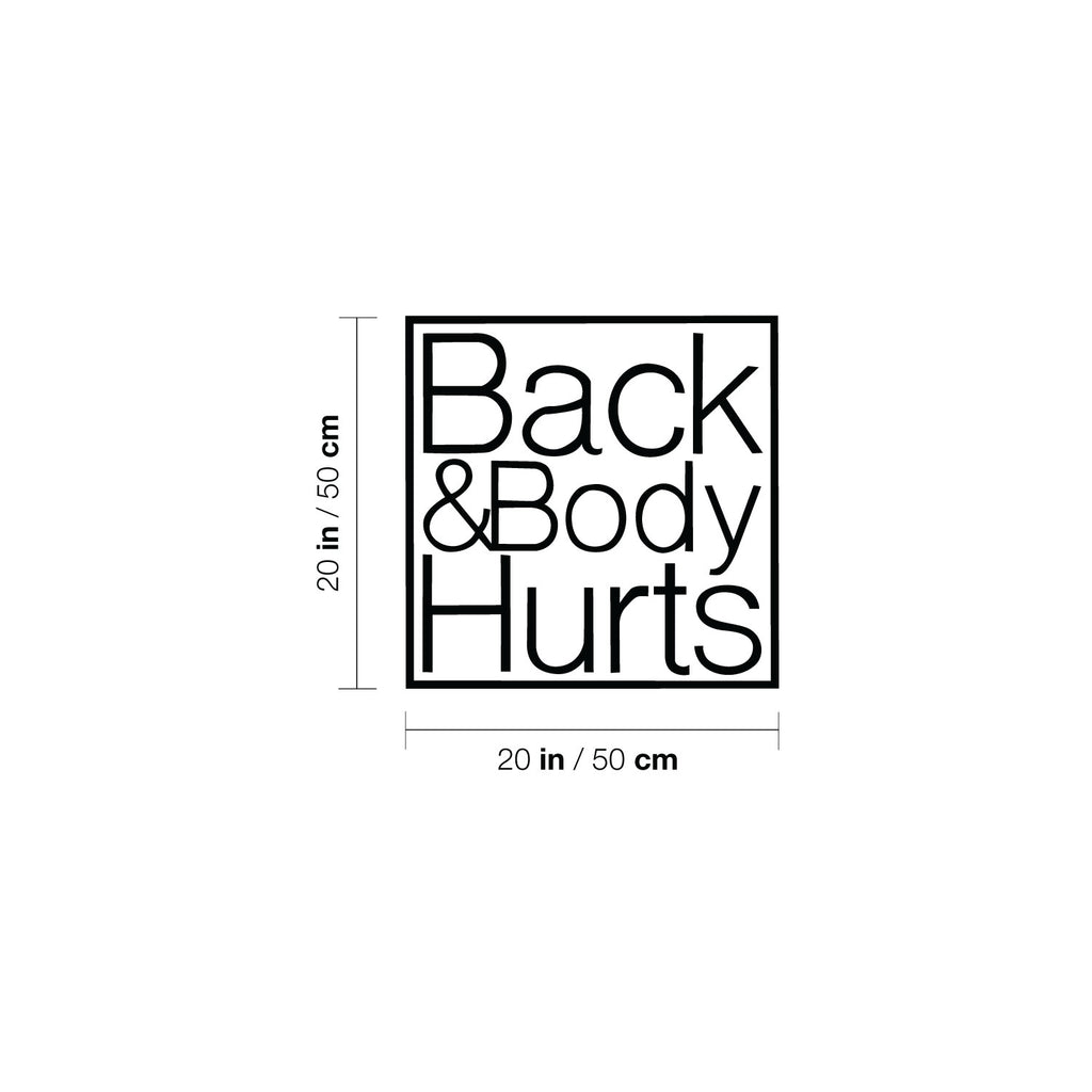 This awesome funny decal quote "Back And Body Hurts"; is the perfect touch for your home. Use it for your kids room; living room or anywhere you want to bring some extra decoration. It's a vinyl sticker that is easy to put on any smooth and dry surface. Our modern designs don't just brighten up the room; but brighten up the day. Using top of the line vinyl across all of our production allows us to be the leaders in quality and design.