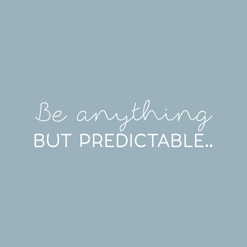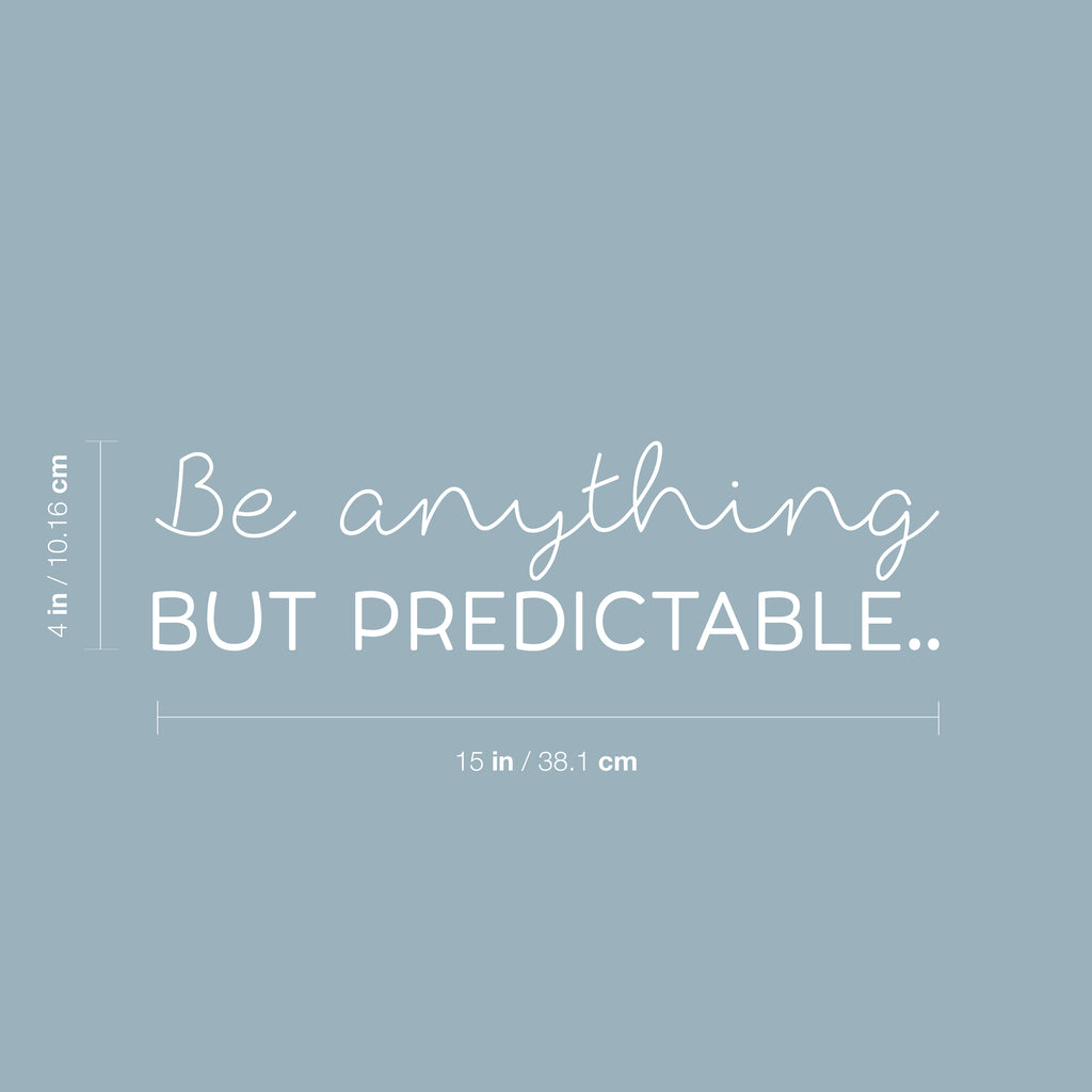 This motivational & positive decal quote "Be Anything But Predictable"; is the perfect touch for your school or office. Use it for your playroom; kids room or anywhere you want to bring some extra inspirational decoration. It's a vinyl sticker that is easy to put on any smooth and dry surface. Our modern designs don't just brighten up the room; but brighten up the day. Using top of the line vinyl across all of our production allows us to be the leaders in quality and design.