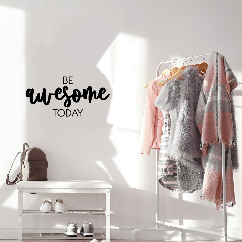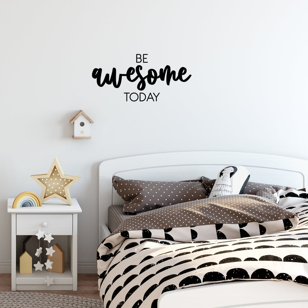 This awesome positive decal quote "Be Awesome Today"; is the perfect touch for your home or office. Use it for your playroom; kids room; classroom or anywhere you want to bring some extra positive decoration. It's a vinyl sticker that is easy to put on any smooth and dry surface. Our modern designs don't just brighten up the room; but brighten up the day. Using top of the line vinyl across all of our production allows us to be the leaders in quality and design.