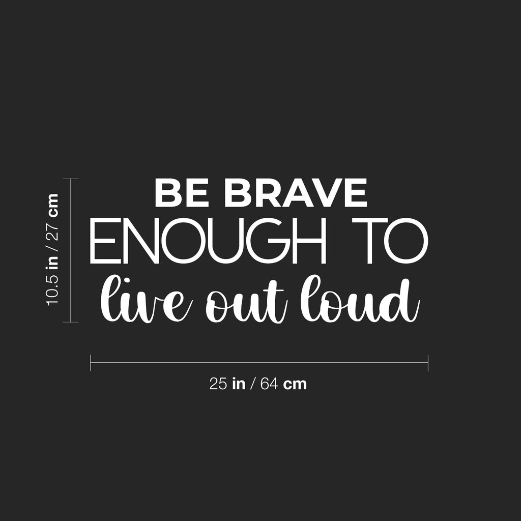 This modern positive & motivational decal quote "Be Brave Enough To Live Out Loud"; is the perfect touch for your wellness center or home. Use it for your bedroom; fitness center; office or anywhere you want to bring some extra positive decoration. It's a vinyl sticker that is easy to put on any smooth and dry surface. Our modern designs don't just brighten up the room; but brighten up the day. Using top of the line vinyl across all of our production allows us to be the leaders in quality and design.