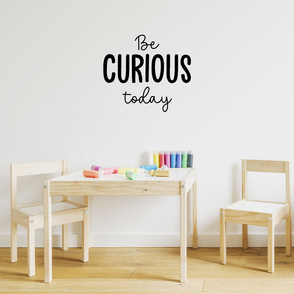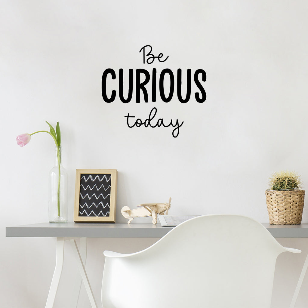 This awesome cute decal quote "Be Curious Today"; is the perfect touch for your home. Use it for your living room; playroom; kids room or anywhere you want to bring some extra cute decoration. It's a vinyl sticker that is easy to put on any smooth and dry surface. Our modern designs don't just brighten up the room; but brighten up the day. Using top of the line vinyl across all of our production allows us to be the leaders in quality and design.