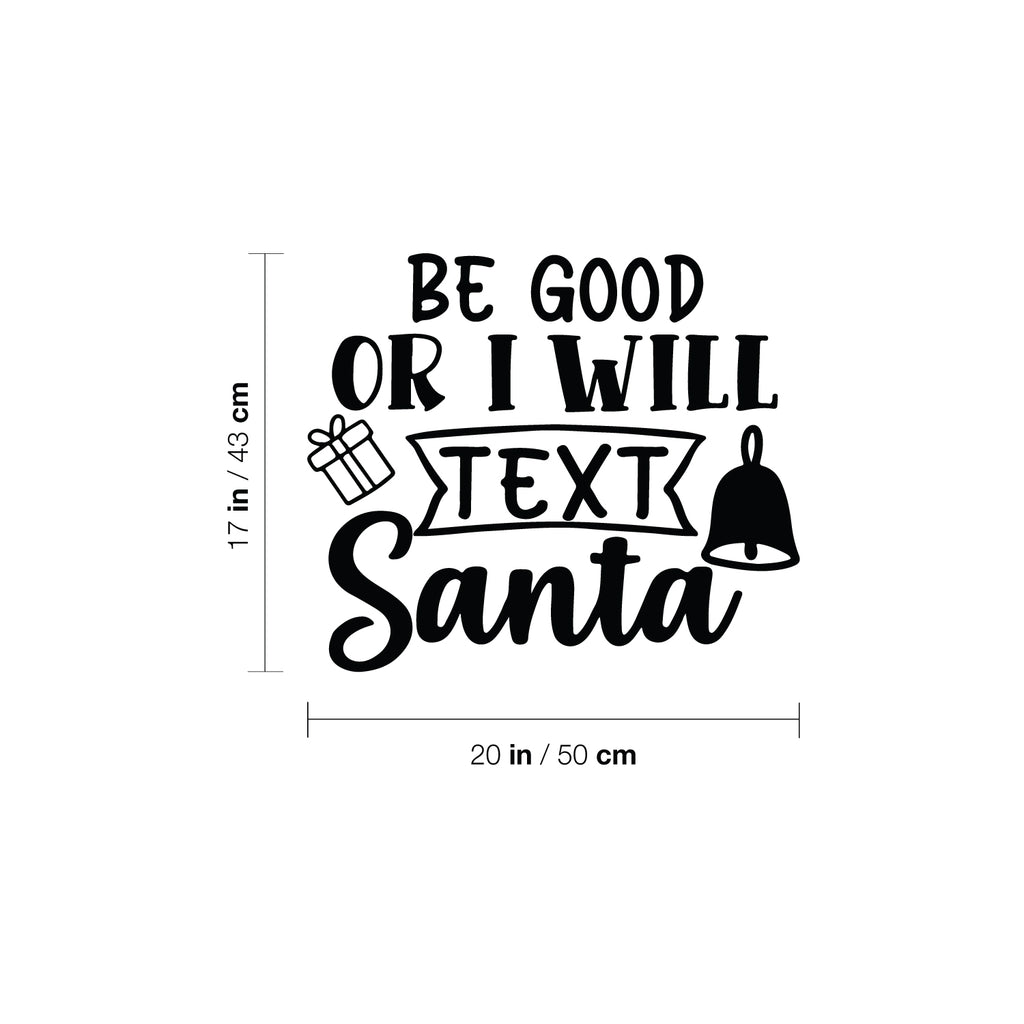 This awesome lovely & fun christmas season decal design "Be Good Or I Will Text Santa"; is the perfect touch for your home or office. Use it for your family room; entry doors; storefront windows or anywhere you want to bring some cute decoration. It's a vinyl sticker that is easy to put on any smooth and dry surface. Our modern designs don't just brighten up the room; but brighten up the day. Using top of the line vinyl across all of our production allows us to be the leaders in quality and design.