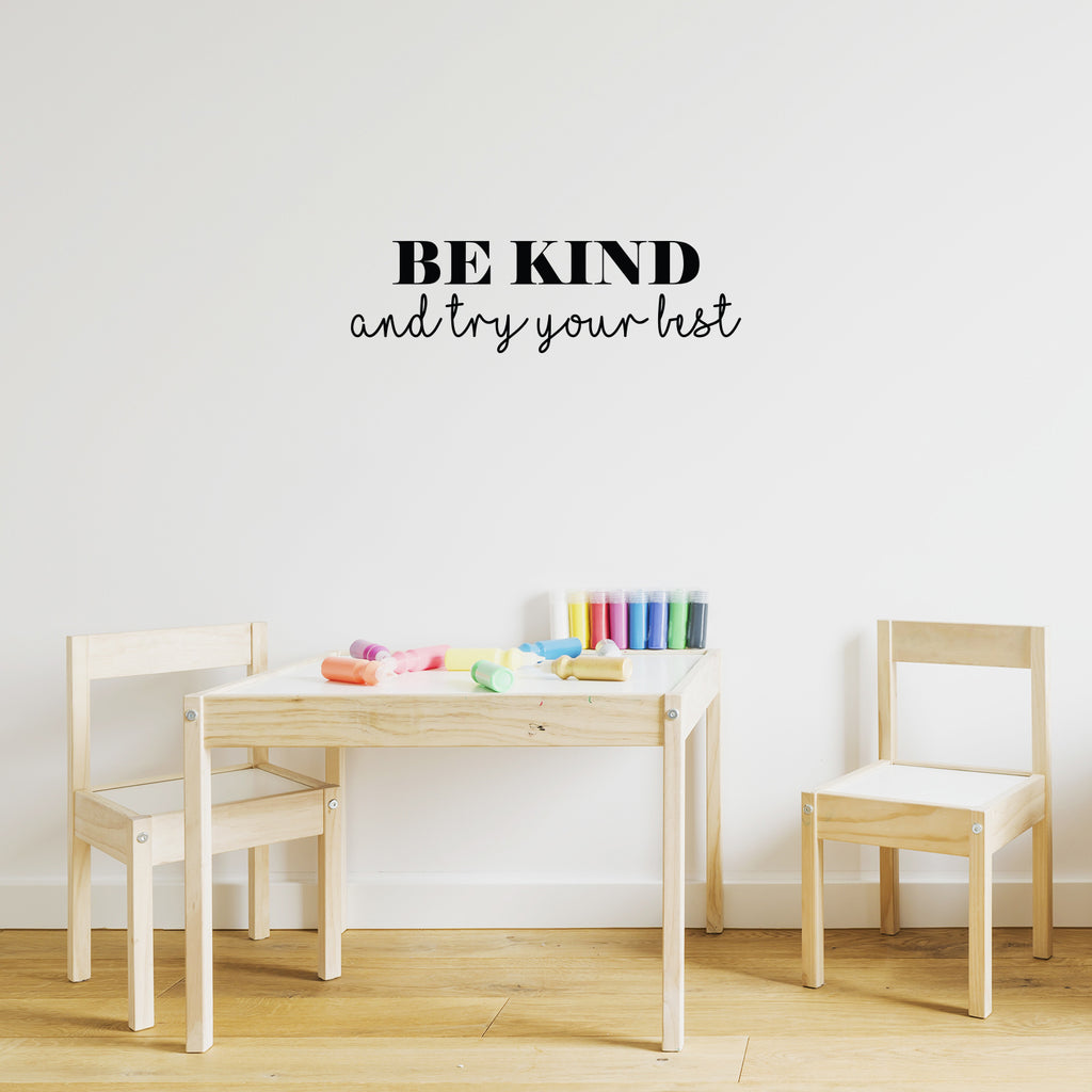 This awesome cute & motivational decal quote "Be Kind And Try Your Best"; is the perfect touch for your home or school. Use it for your living room; playroom; kids room or anywhere you want to bring some extra cute decoration. It's a vinyl sticker that is easy to put on any smooth and dry surface. Our modern designs don't just brighten up the room; but brighten up the day. Using top of the line vinyl across all of our production allows us to be the leaders in quality and design.