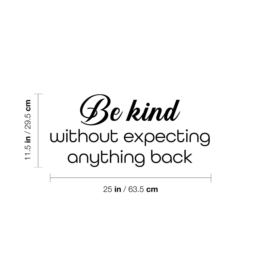 This awesome motivational decal quote "Be Kind Without Expecting Anything Back"; is the perfect touch for your home or office. Use it for your dorm room; home office; living room or anywhere you want to bring some extra cute decoration. It's a vinyl sticker that is easy to put on any smooth and dry surface. Our modern designs don't just brighten up the room; but brighten up the day. Using top of the line vinyl across all of our production allows us to be the leaders in quality and design.