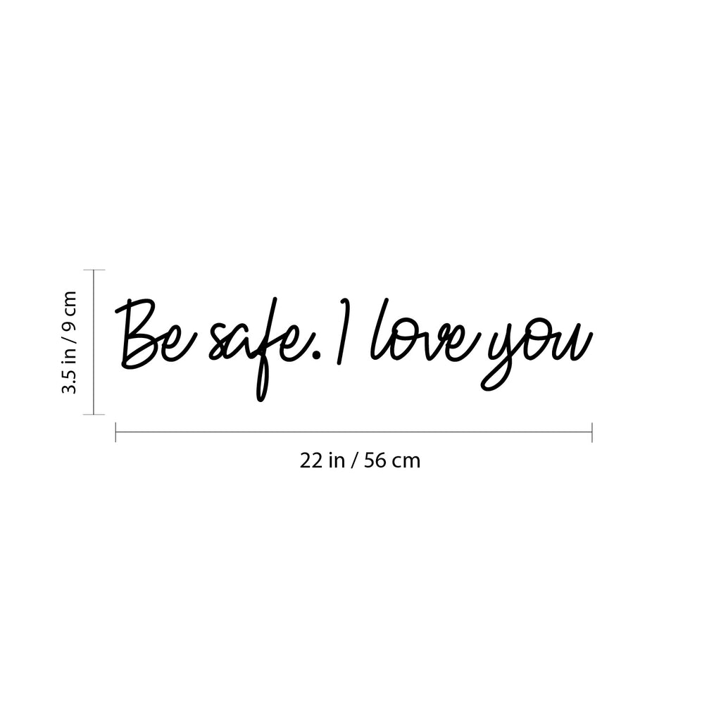 This motivational & positive decal quote "Be Safe. I Love You"; is the perfect touch for your school or office. Use it for your playroom; kids room or anywhere you want to bring some extra inspirational decoration. It's a vinyl sticker that is easy to put on any smooth and dry surface. Our modern designs don't just brighten up the room; but brighten up the day. Using top of the line vinyl across all of our production allows us to be the leaders in quality and design.