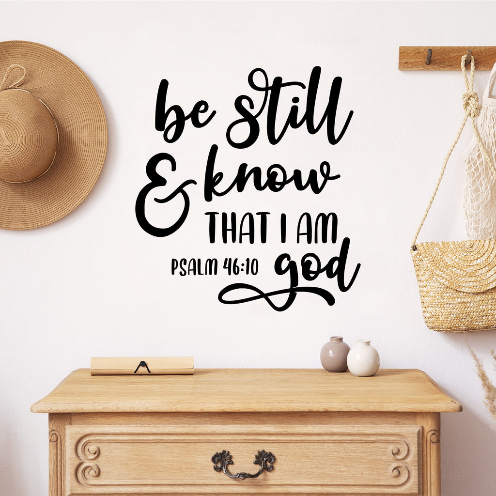 This awesome spiritual & inspiring decal quote "Be Still and Know That I Am God - Psalm 46:10"; is the perfect touch for your home. Use it for your bedroom; closet; living room or anywhere you want to bring some extra cute decoration. It's a vinyl sticker that is easy to put on any smooth and dry surface. Our modern designs don't just brighten up the room; but brighten up the day. Using top of the line vinyl across all of our production allows us to be the leaders in quality and design.