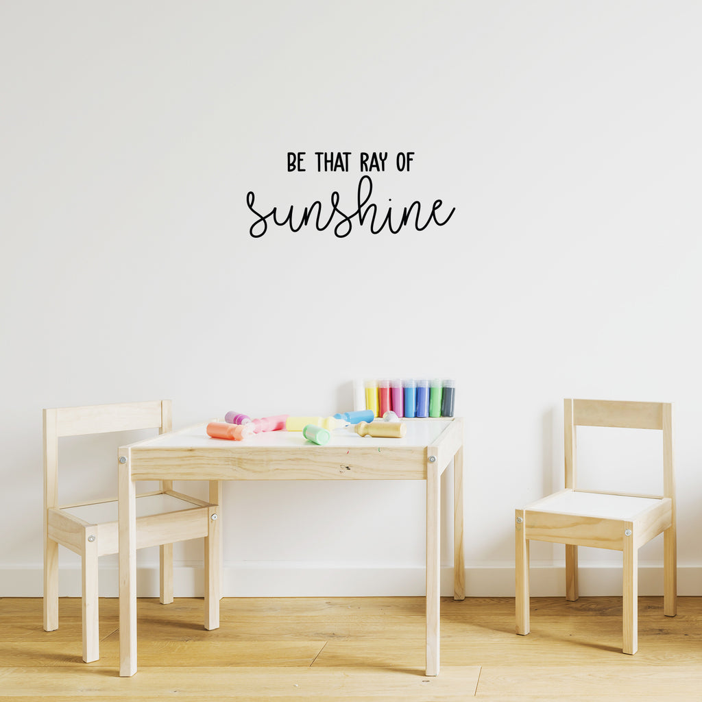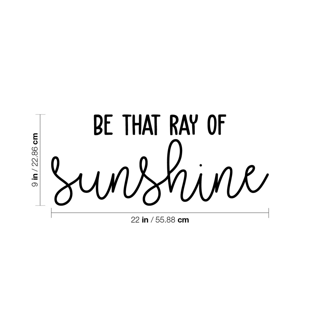 This awesome decal quote "Be That Ray Of Sunshine"; is the perfect touch for your home. Use it for your kids room; living room or anywhere you want to bring some extra decoration. It's a vinyl sticker that is easy to put on any smooth and dry surface. Our modern designs don't just brighten up the room; but brighten up the day. Using top of the line vinyl across all of our production allows us to be the leaders in quality and design.