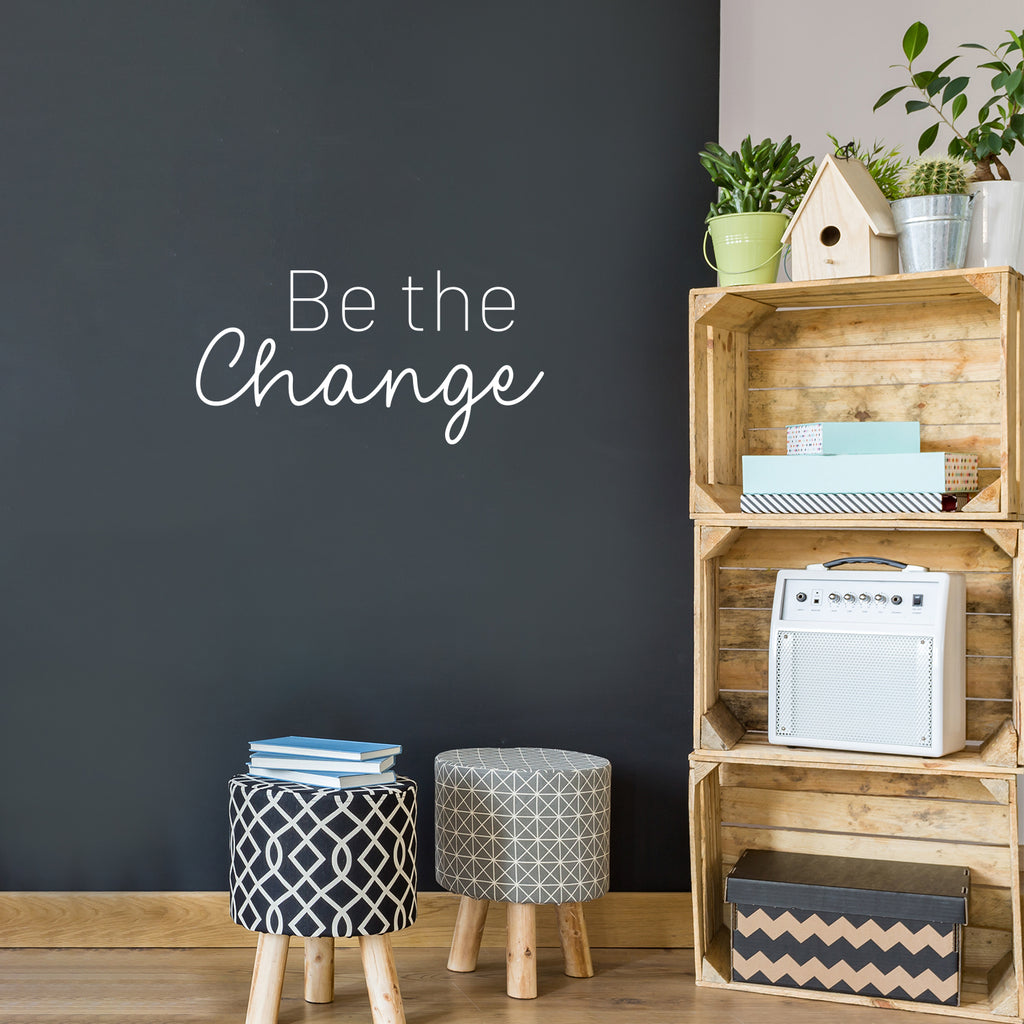 This awesome positive decal quote "Be The Change"; is the perfect touch for your home or office. Use it for your bedroom; closet ; classroom or anywhere you want to bring some extra positive decoration. It's a vinyl sticker that is easy to put on any smooth and dry surface. Our modern designs don't just brighten up the room; but brighten up the day. Using top of the line vinyl across all of our production allows us to be the leaders in quality and design.