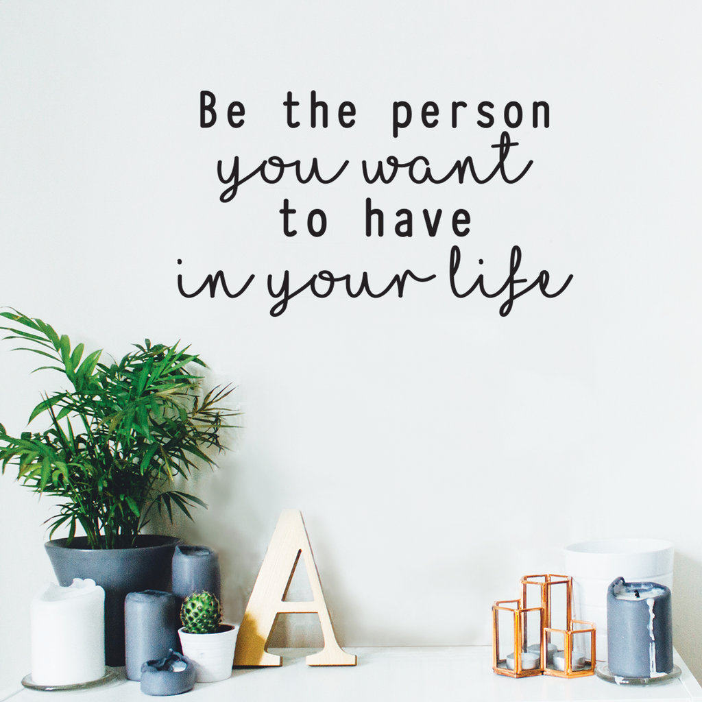 This motivational "Be The Person You Want To Have In Your Life" wall decal quote is modern and the perfect touch for your home or workplace. Use it for your bedroom; living room; or any other room in your house where you want to bring some extra decoration. It's a vinyl sticker that is easy to put on almost any smooth and dry surface. Our designs don't just brighten up the room; but brighten up your day. Using top of the line vinyl across all of our production allows us to be the leaders in quality and design.