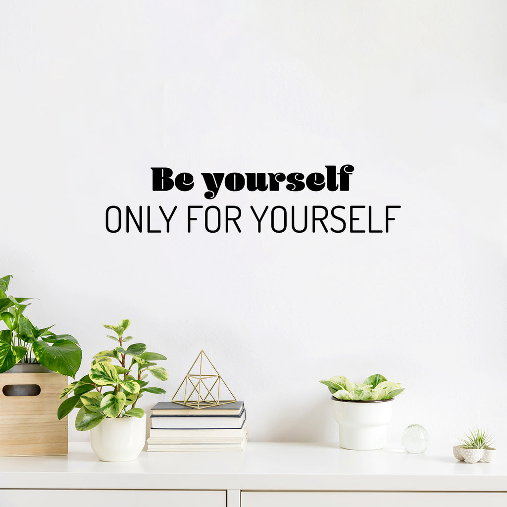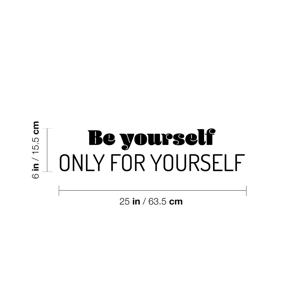This great decal quote "Be Yourself Only For Yourself"; is the perfect touch for your home. Use it for your makeup area; dorm room or anywhere you want to bring some extra decoration. It's a vinyl sticker that is easy to put on any smooth and dry surface. Our modern designs don't just brighten up the room; but brighten up the day. Using top of the line vinyl across all of our production allows us to be the leaders in quality and design.