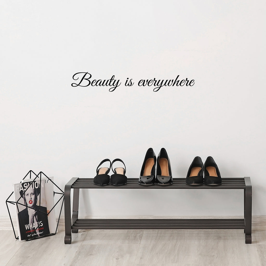 This modern motivational decal quote "Beauty Is Everywhere"; is the perfect touch for your home or work. Use it for your living room; bedroom; office or anywhere you want to bring some extra decoration. It's a vinyl sticker that is easy to put on any smooth and dry surface. Our modern designs don't just brighten up the room; but brighten up the day. Using top of the line vinyl across all of our production allows us to be the leaders in quality and design.
