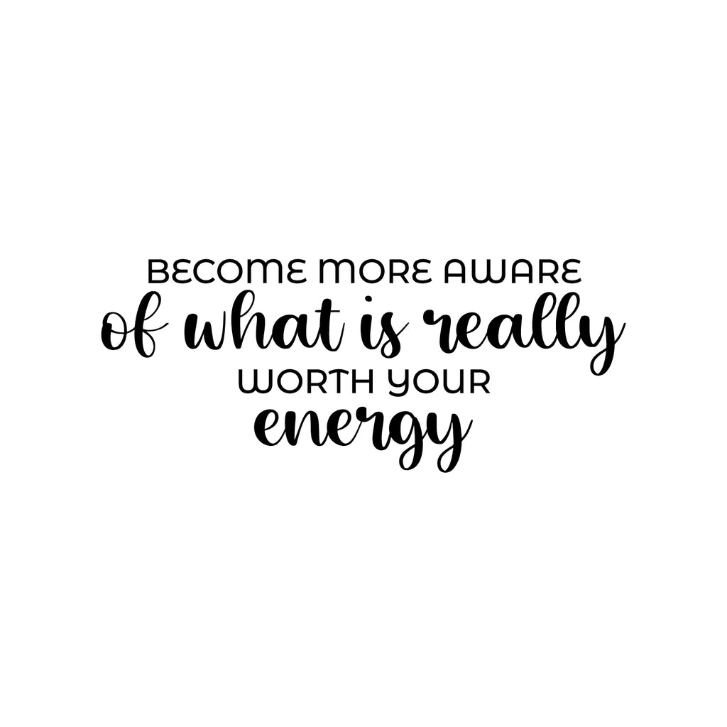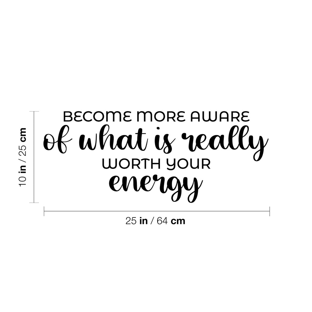 This awesome positive decal quote "Become More Aware Of What Is Really Worth Your Energy "; is the perfect touch for your home or school. Use it for your living room; closet; bathroom or anywhere you want to bring some extra cute decoration. It's a vinyl sticker that is easy to put on any smooth and dry surface. Our modern designs don't just brighten up the room; but brighten up the day. Using top of the line vinyl across all of our production allows us to be the leaders in quality and design.