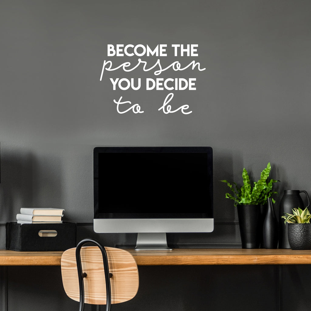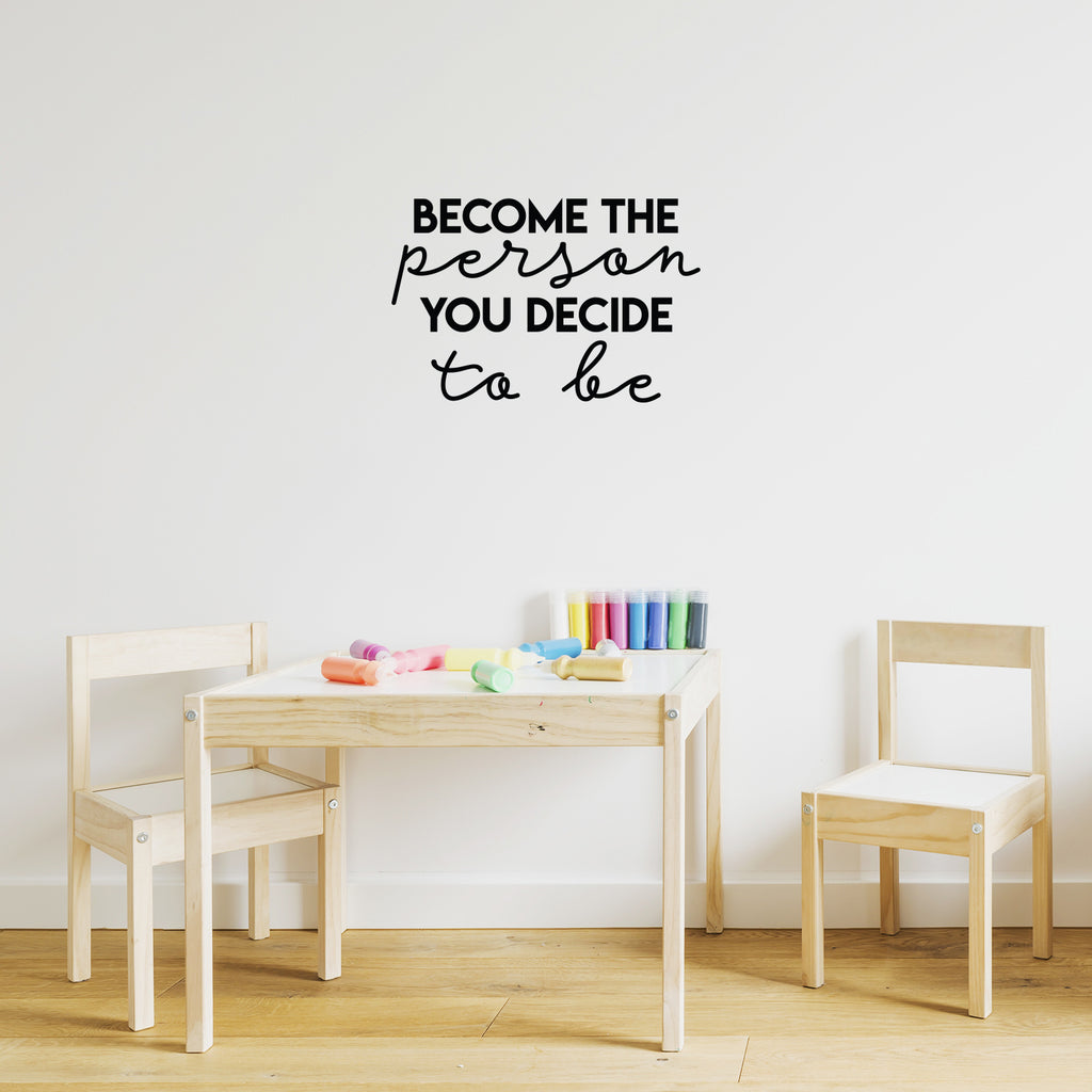 This awesome motivational decal quote "The Person You Decide To Be"; is the perfect touch for your home or school. Use it for your living room; playroom; kids room or anywhere you want to bring some extra cute decoration. It's a vinyl sticker that is easy to put on any smooth and dry surface. Our modern designs don't just brighten up the room; but brighten up the day. Using top of the line vinyl across all of our production allows us to be the leaders in quality and design.